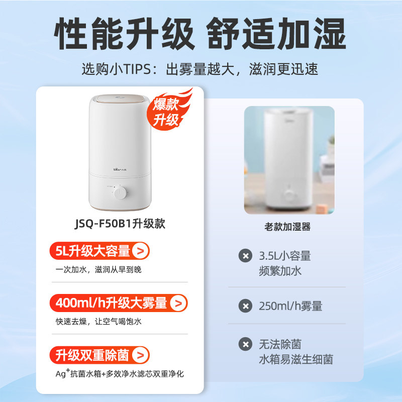 便捷上加水|轻音加湿|缺水断电|5L大容量