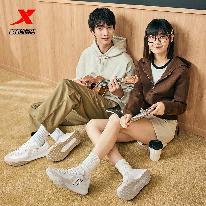 特步休闲鞋女春夏情侣复古德训鞋轻便厚底防滑户外鞋运动鞋子男