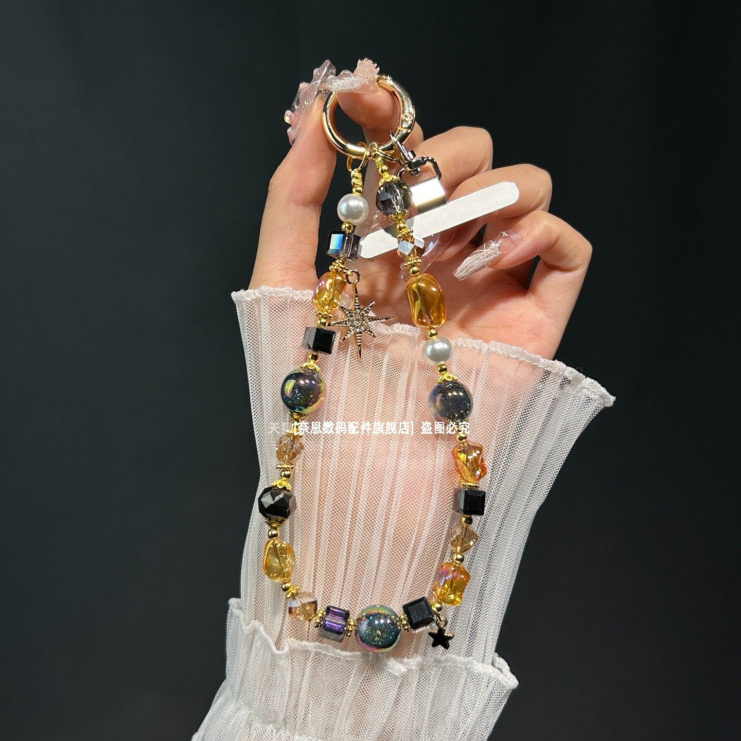 超美八芒星手机链复古高级感水晶链条富家千金时尚手腕挂链手工串珠精致腕带轻奢美拉德手链防丢包挂饰垫片壳