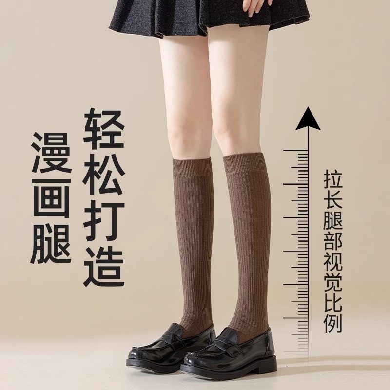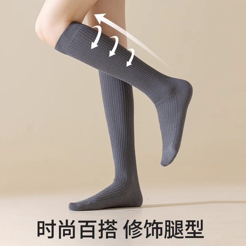 小腿袜子女款秋冬季保暖中筒袜白色防下滑压力袜显瘦长筒袜配靴子