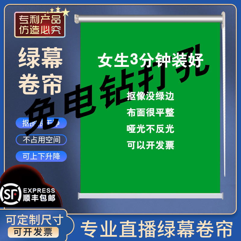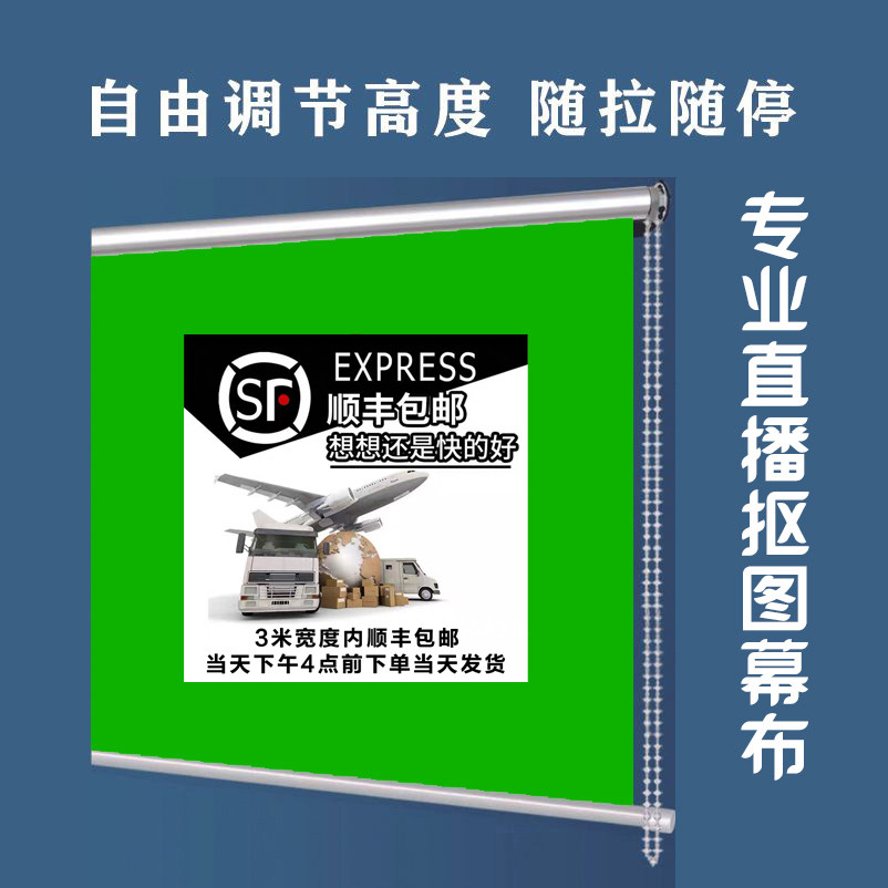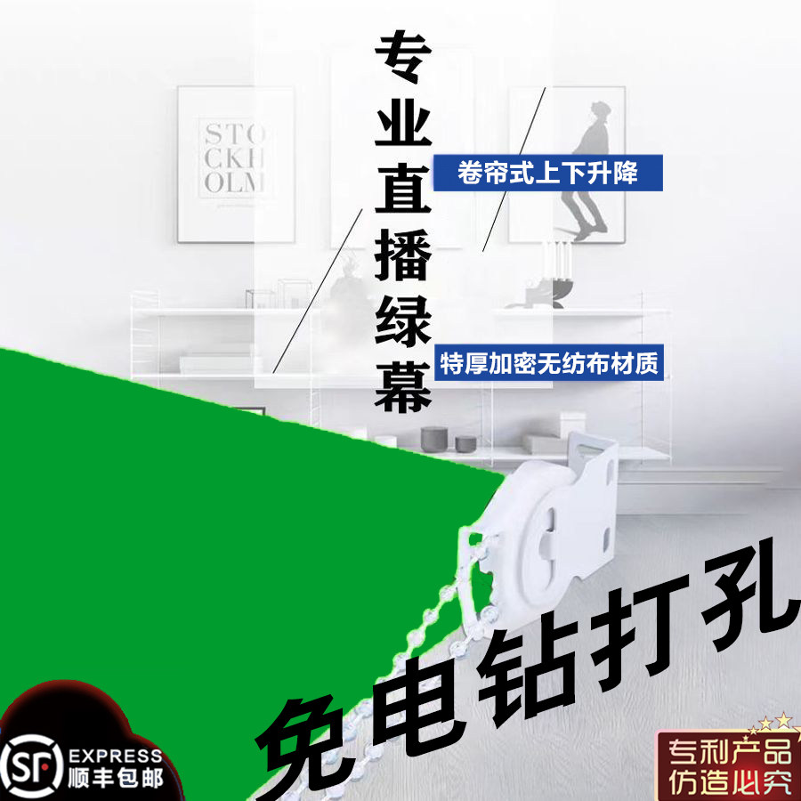 免打孔可升降抠像绿幕卷帘式网红背景抠像布摄影录课直播特厚幕布