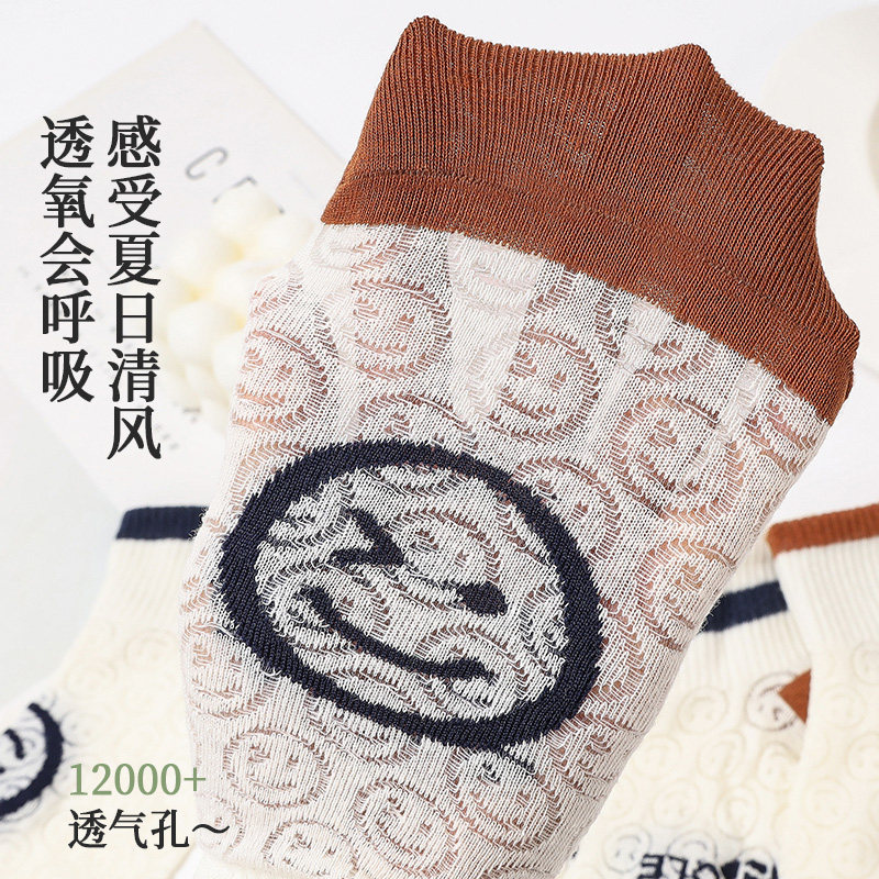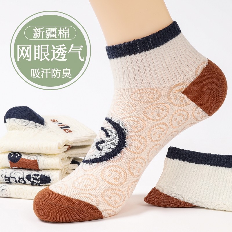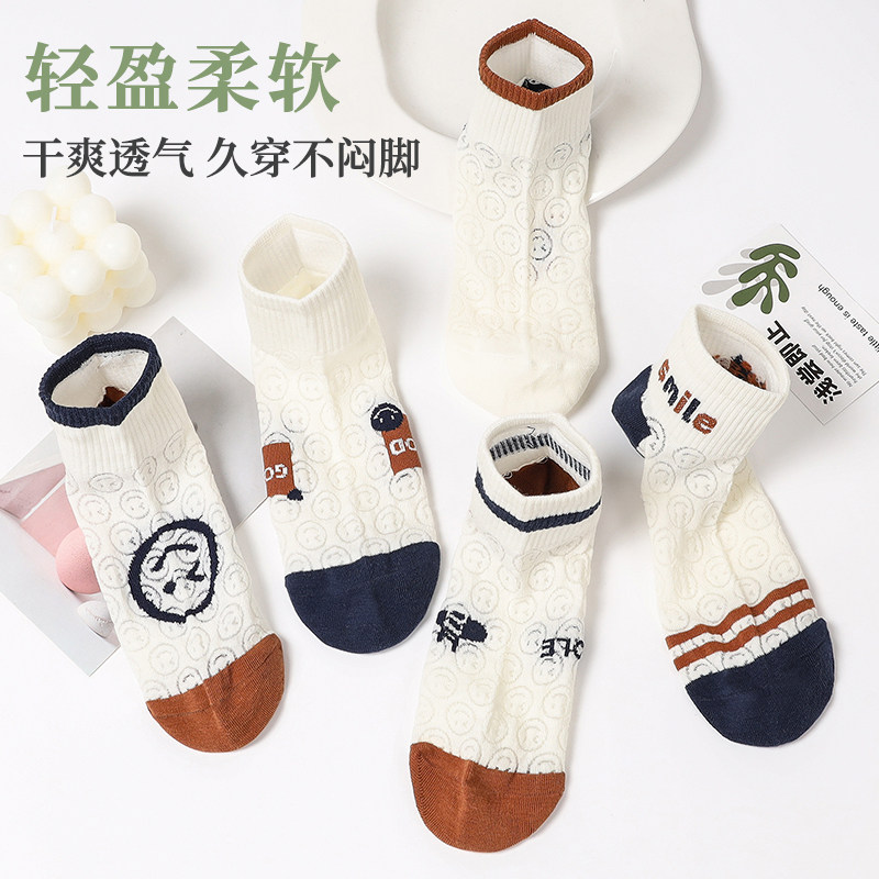 卡通袜子女春秋季纯涤棉短袜吸汗透气短筒袜夏季网眼透气薄款船袜