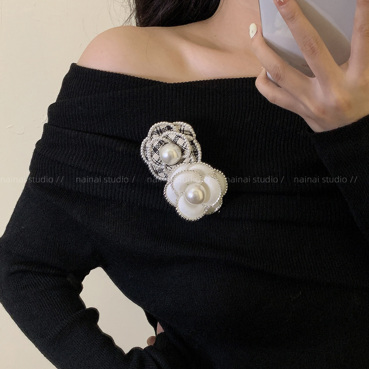 高级感山茶花胸针~小香风复古法式花朵珍珠别针胸花外套大衣配饰