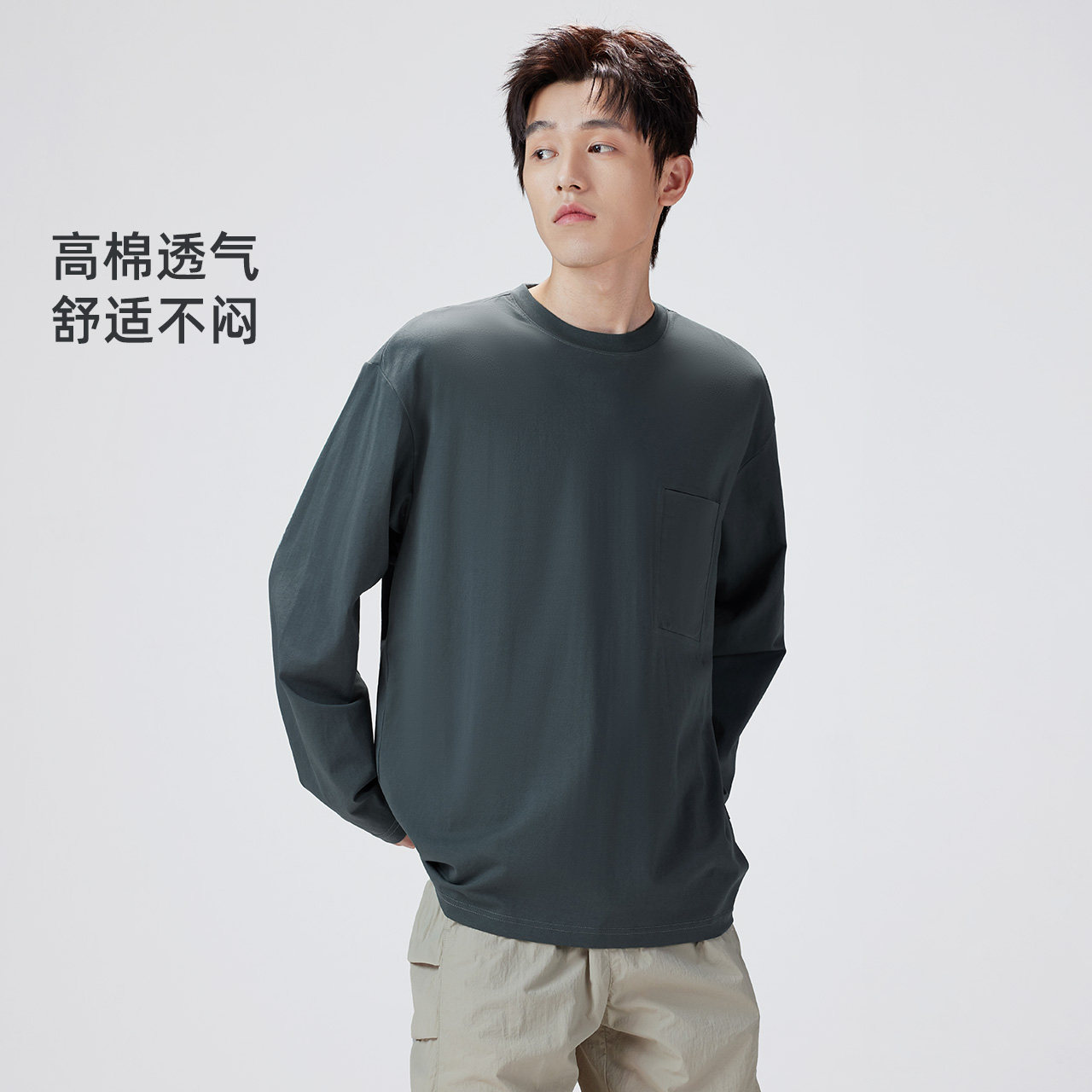 森马短袖T恤男纯棉打底衫修身长袖25夏季新款纯色内搭上衣简约白