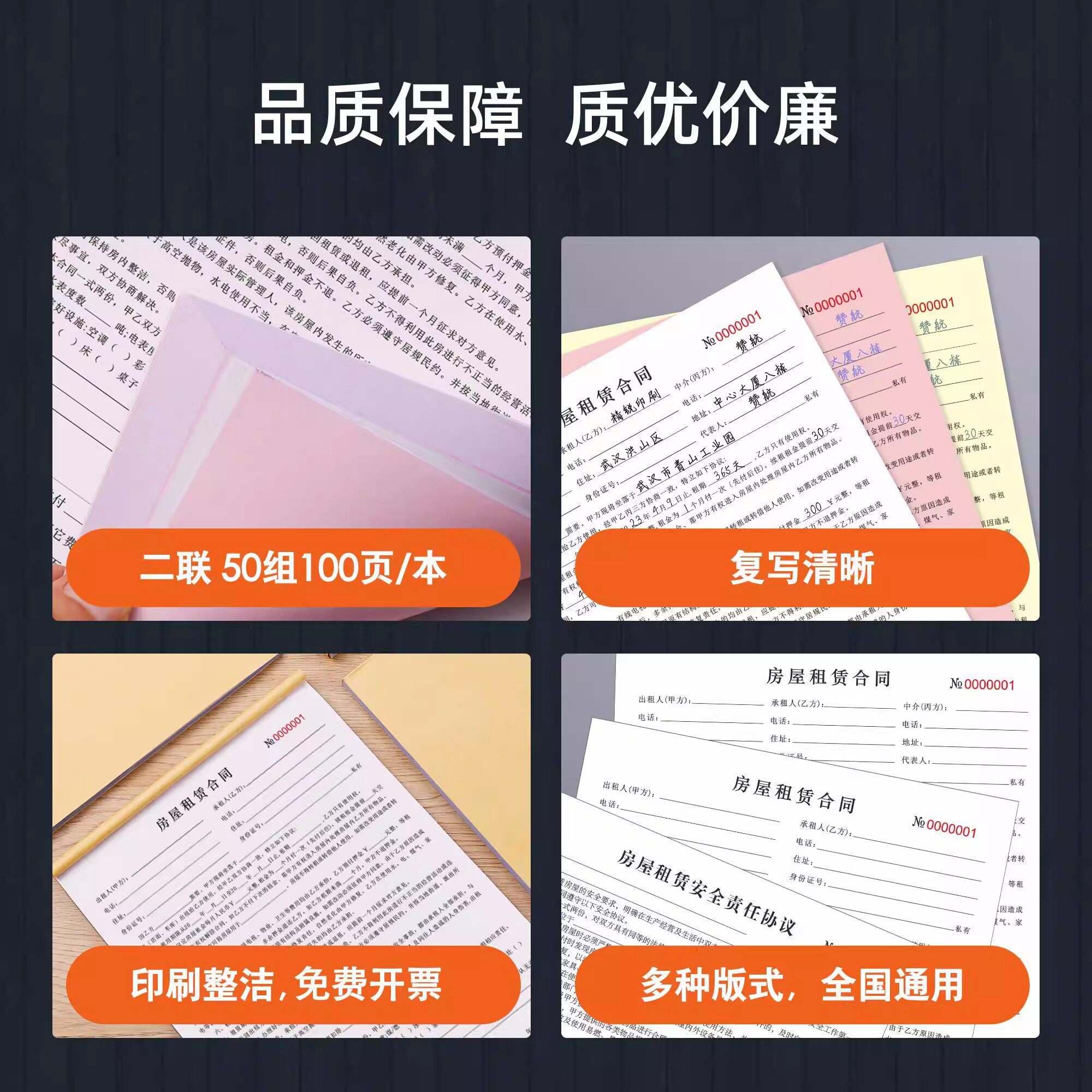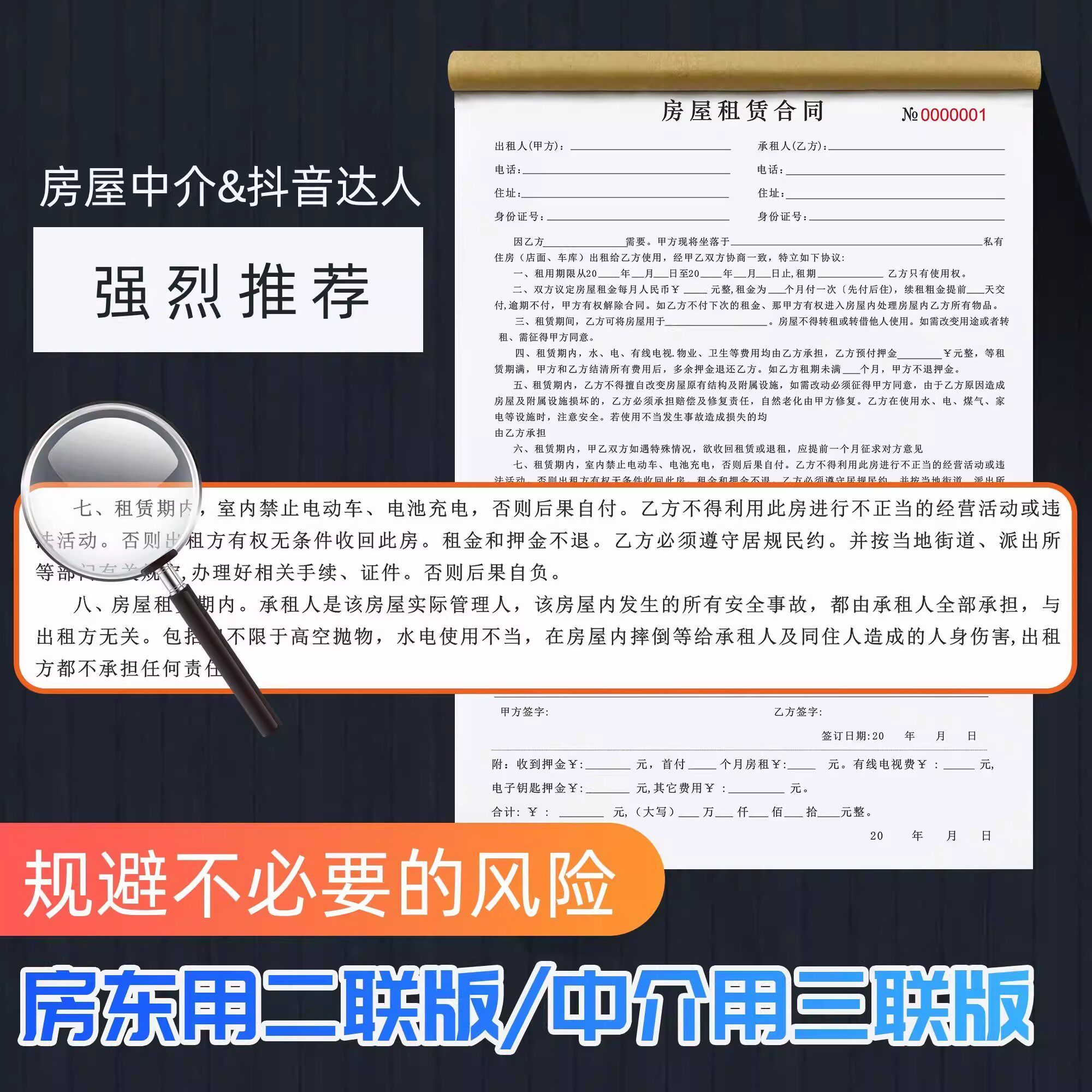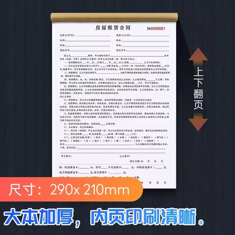 新版房屋租赁合同法律认可出租房商铺房东正规二联租赁协议租房合同书商铺租赁责任复写房东中介款押金收据