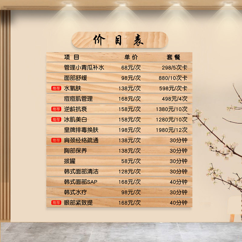 速发美容c院单次价格牌美容养生价目表美甲价格表展示牌定制挂墙
