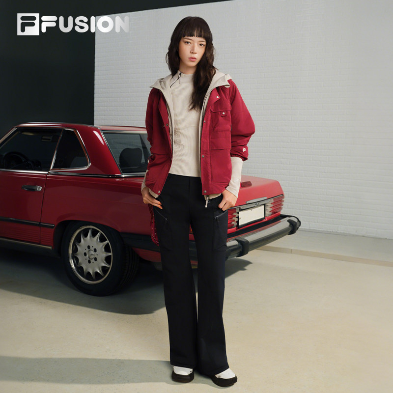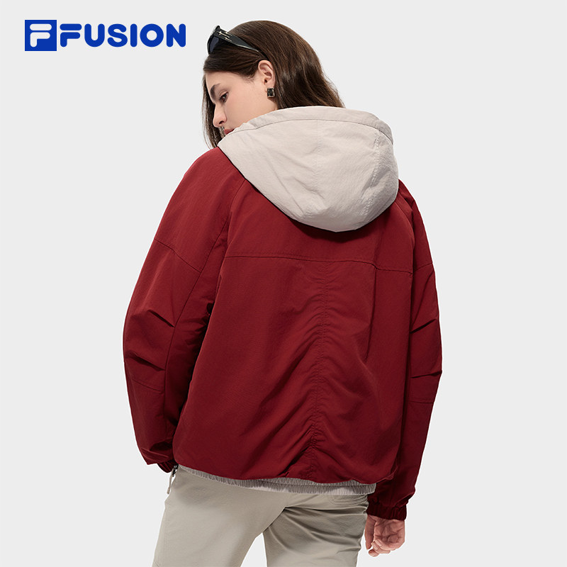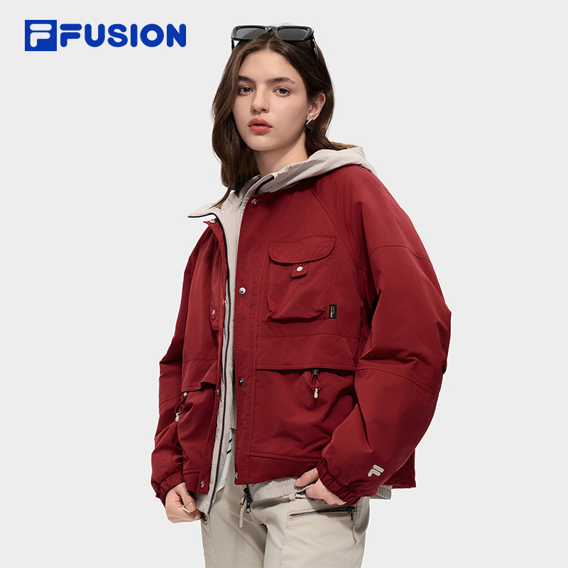 FILA FUSION斐乐潮牌棉服女2026春新款休闲宽松红色外套连帽夹克