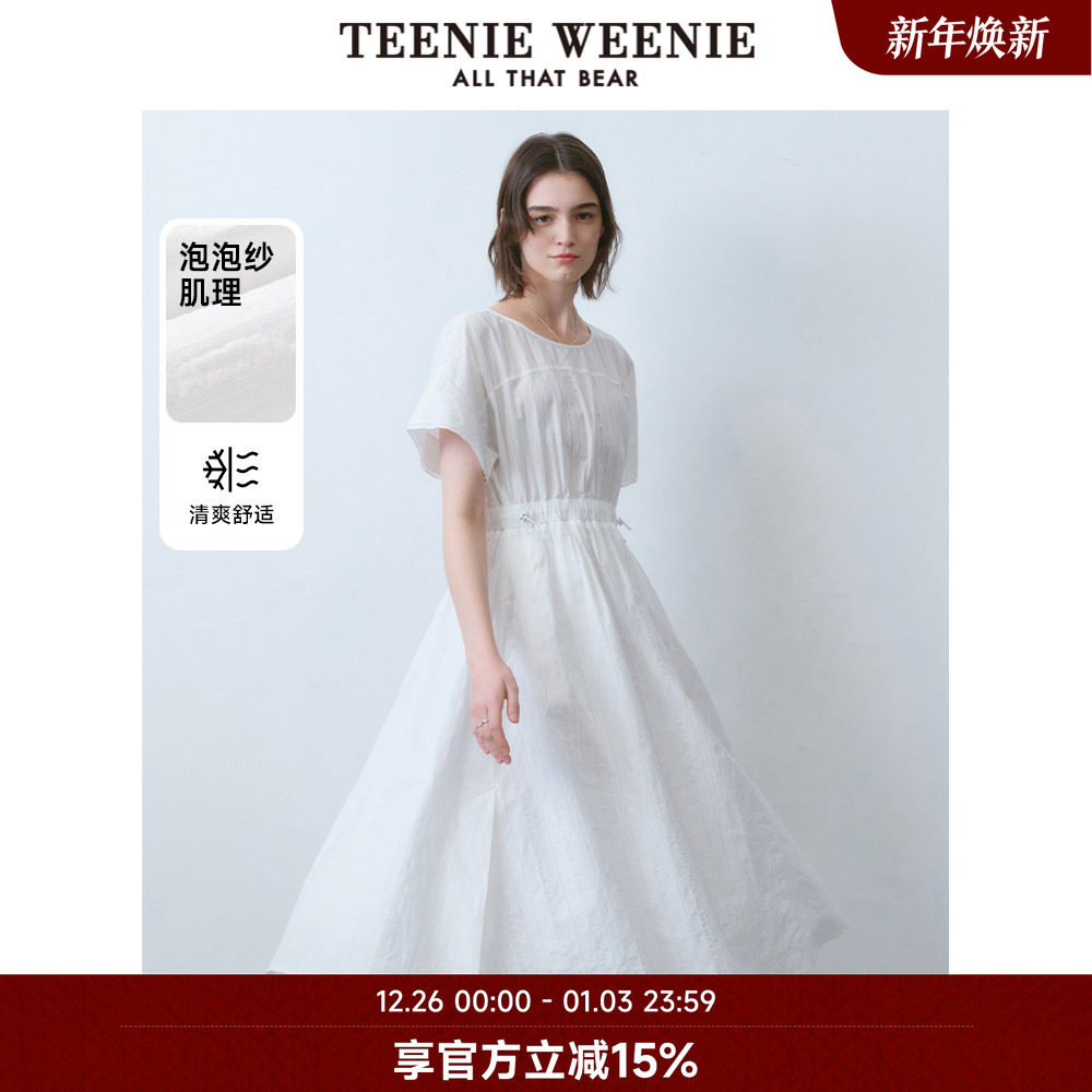 TeenieWeenie小熊奥莱女装夏季短袖连衣裙棉质泡泡布开叉裙