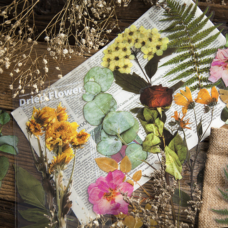 蔷薇海洋 干花绿植PET贴纸 复古文艺手帐diy装饰素材森系贴画防水