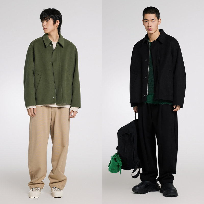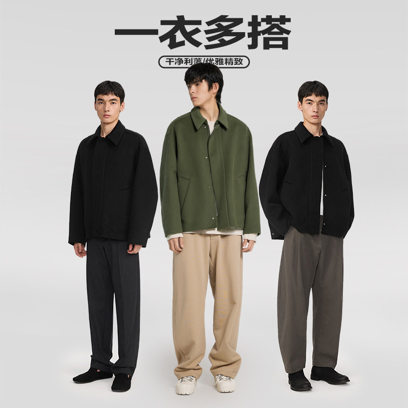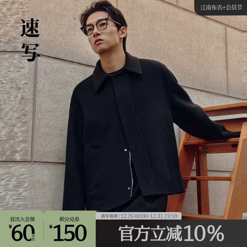 速写outlets奥莱男装秋折扣新品毛呢夹克宽松翻领长袖休闲外套潮