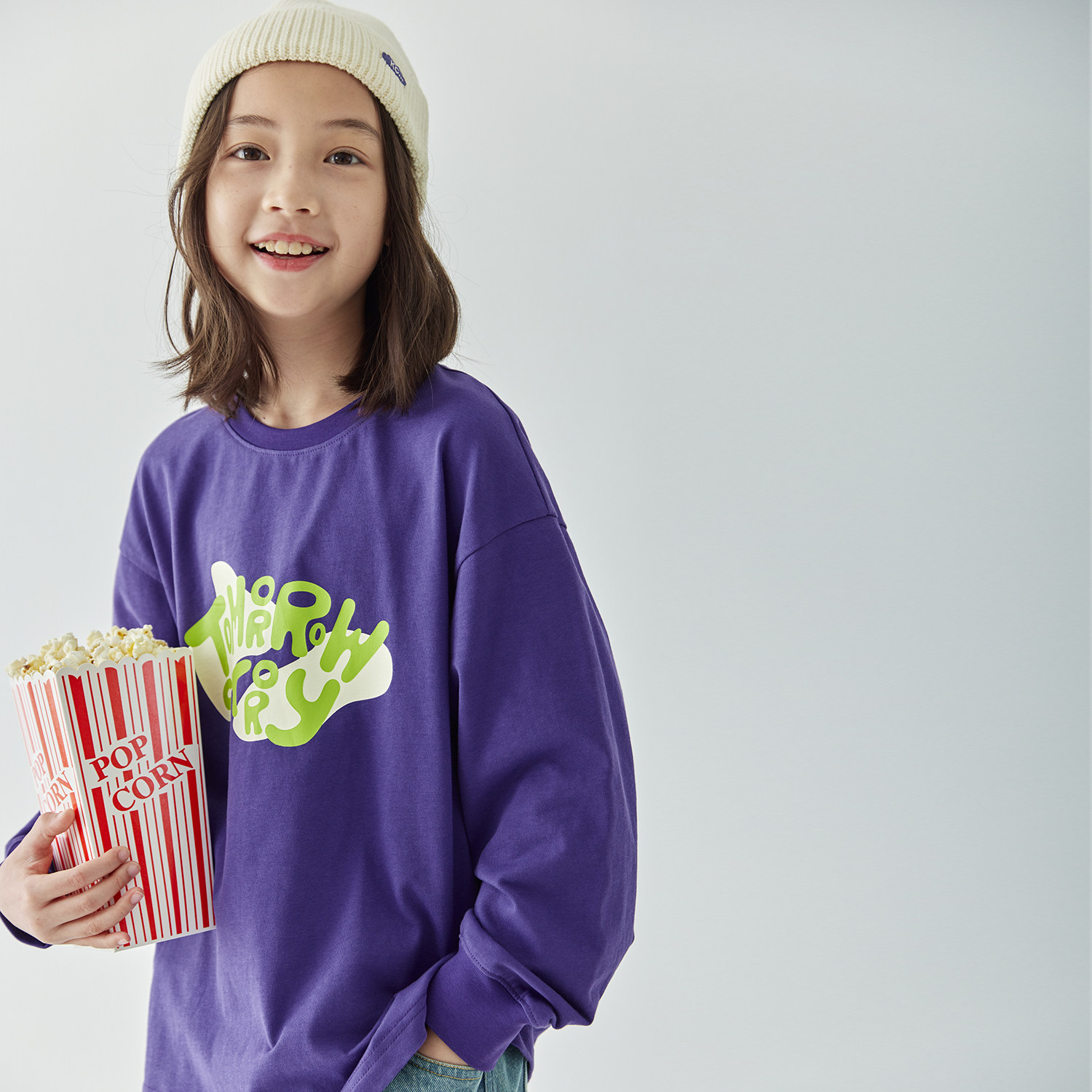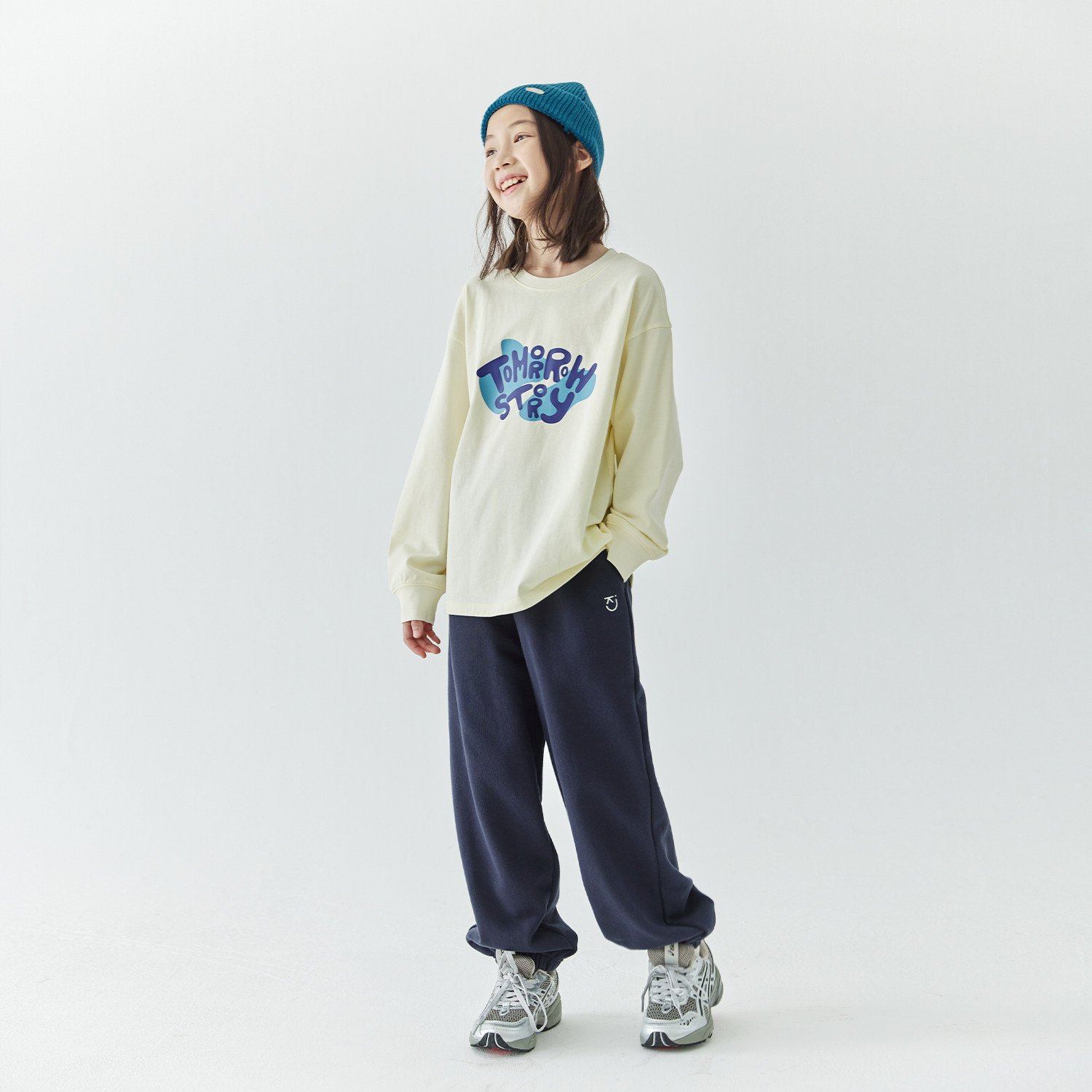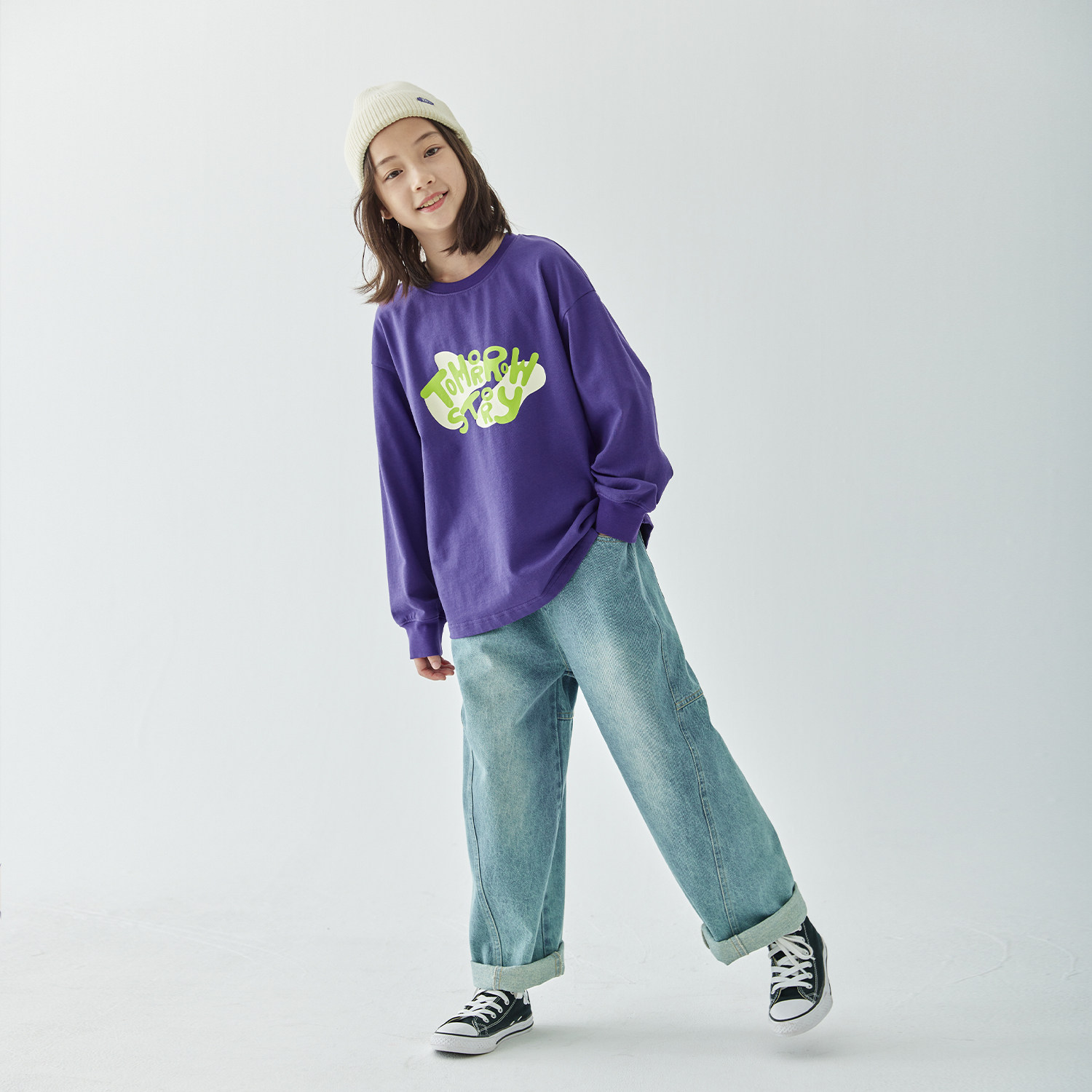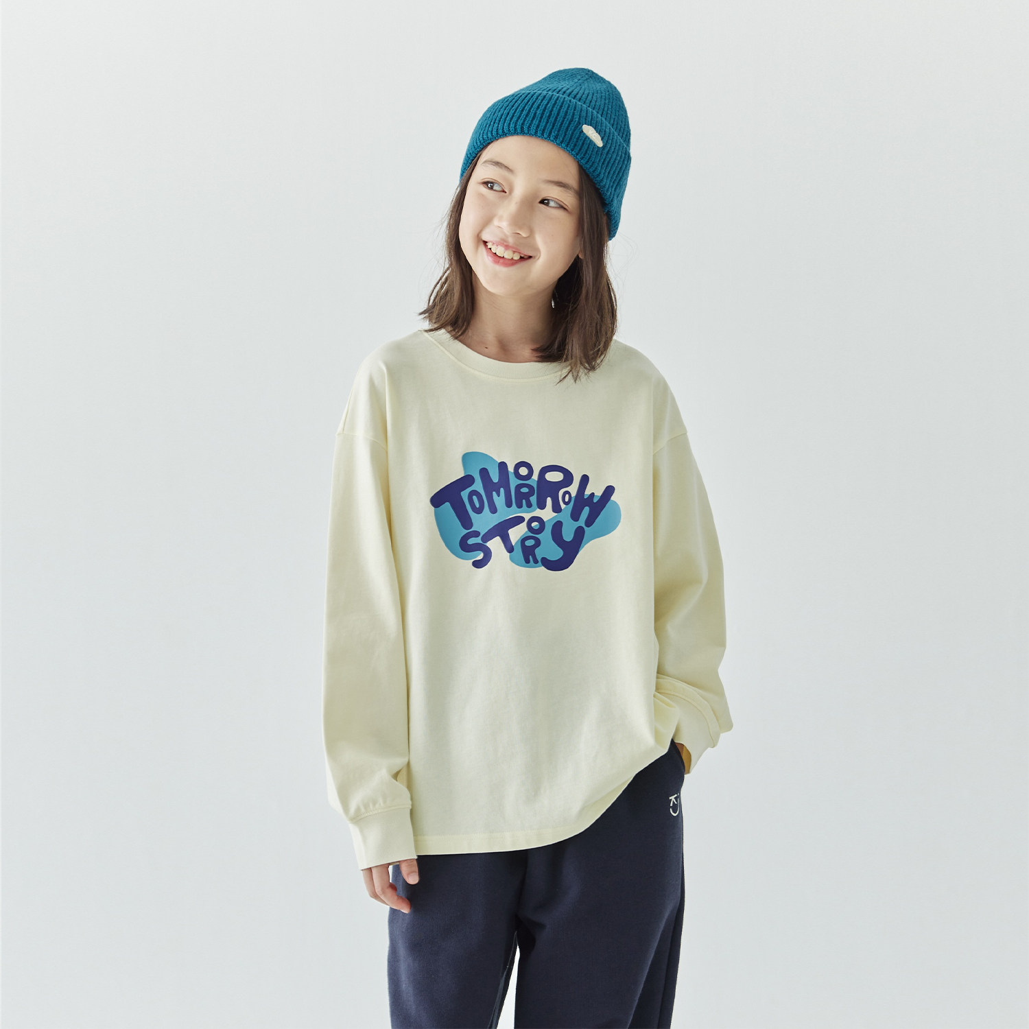 棵初2025新款童装秋冬趣味字母印花长袖T恤亲子简约活力柔软上衣