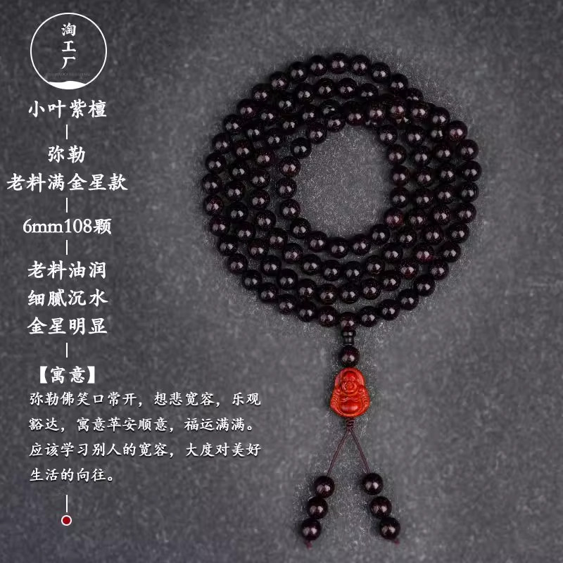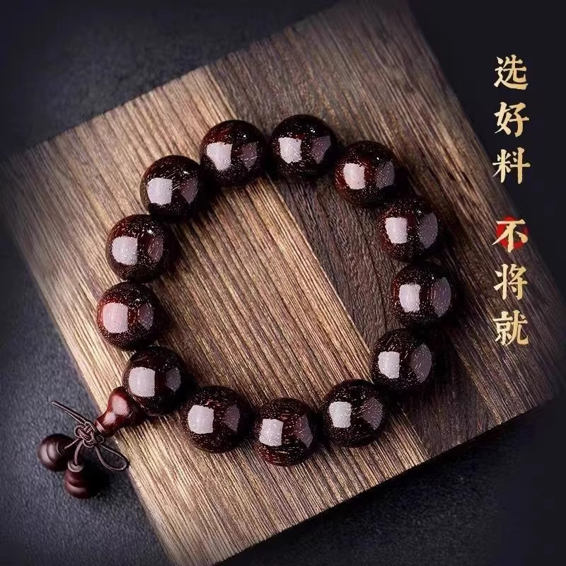 印度小叶紫檀手串108颗佛珠男女手链2.0老料黑檀香木质念珠檀木