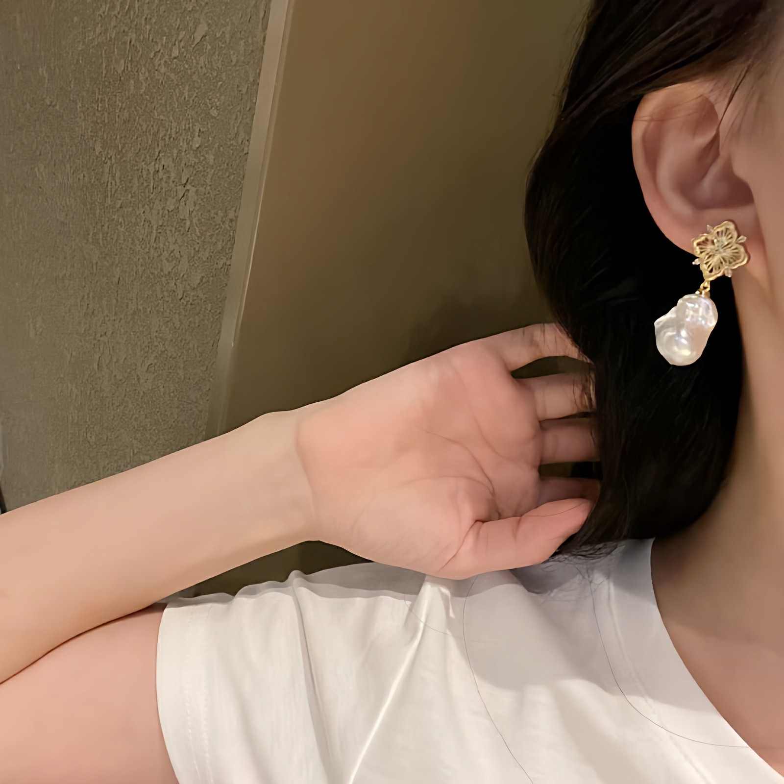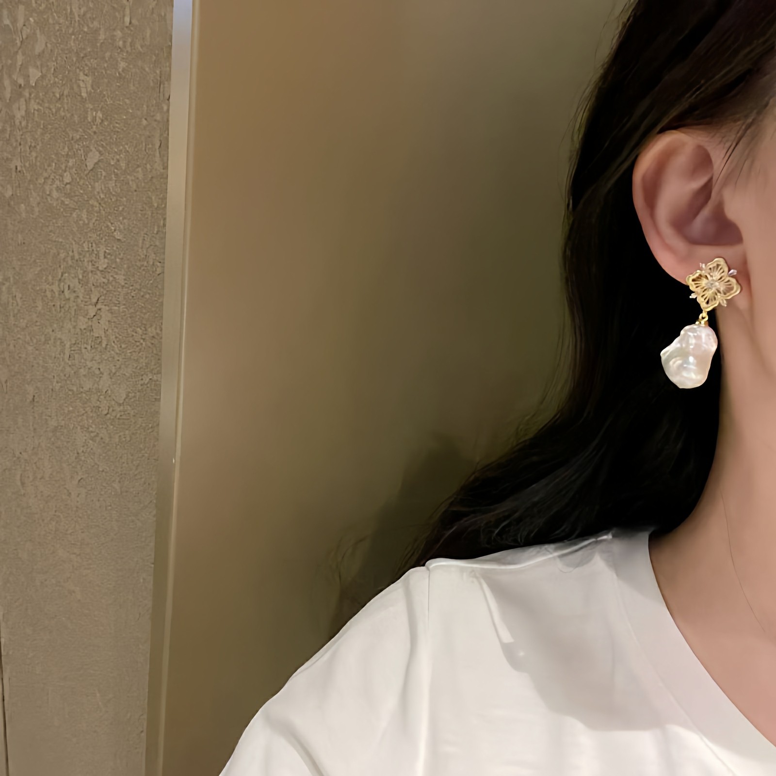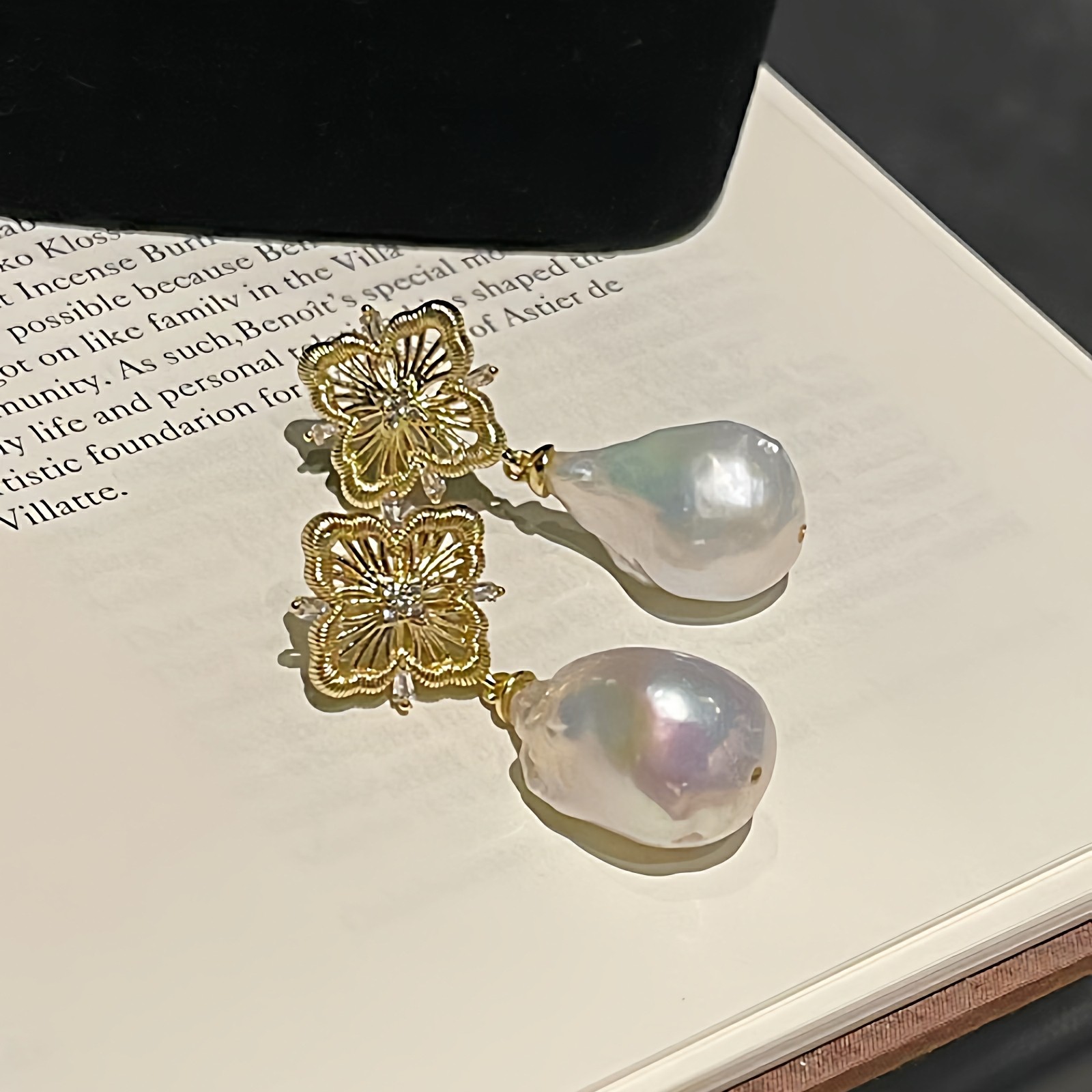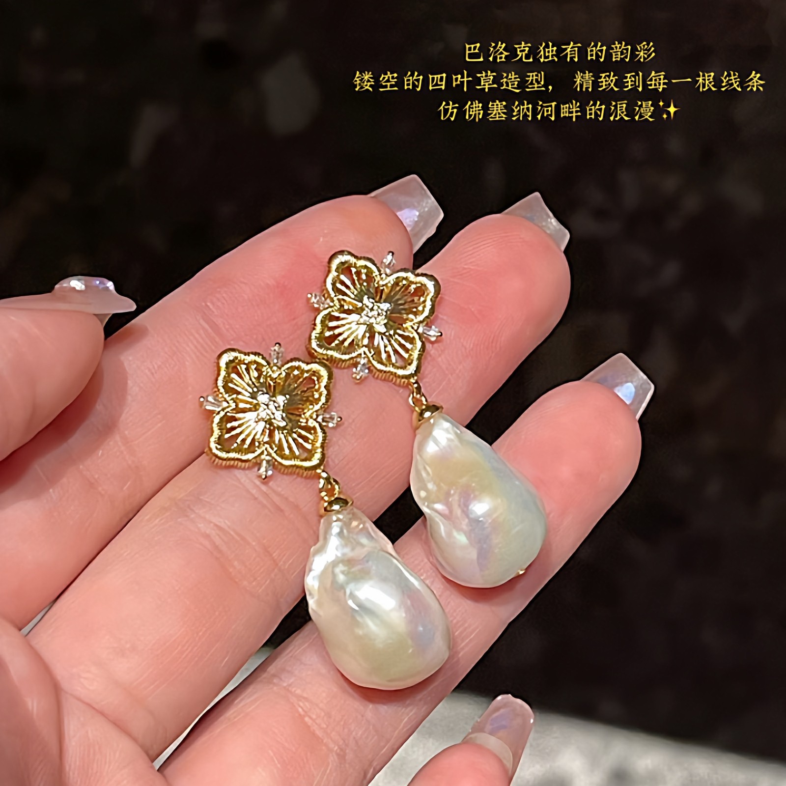 诸暨淡水珍珠耳钉四叶草设计款巴洛克耳环随性高级简约节日礼物