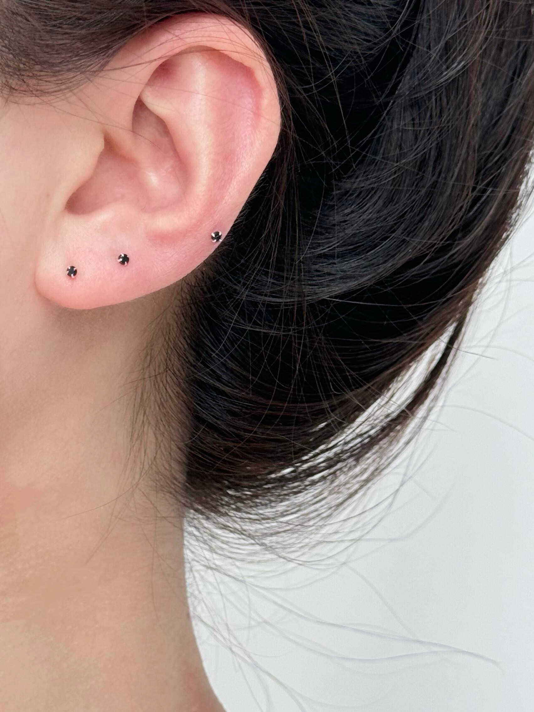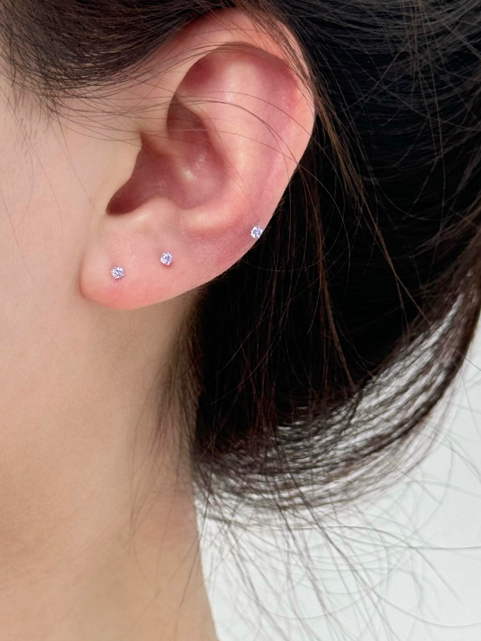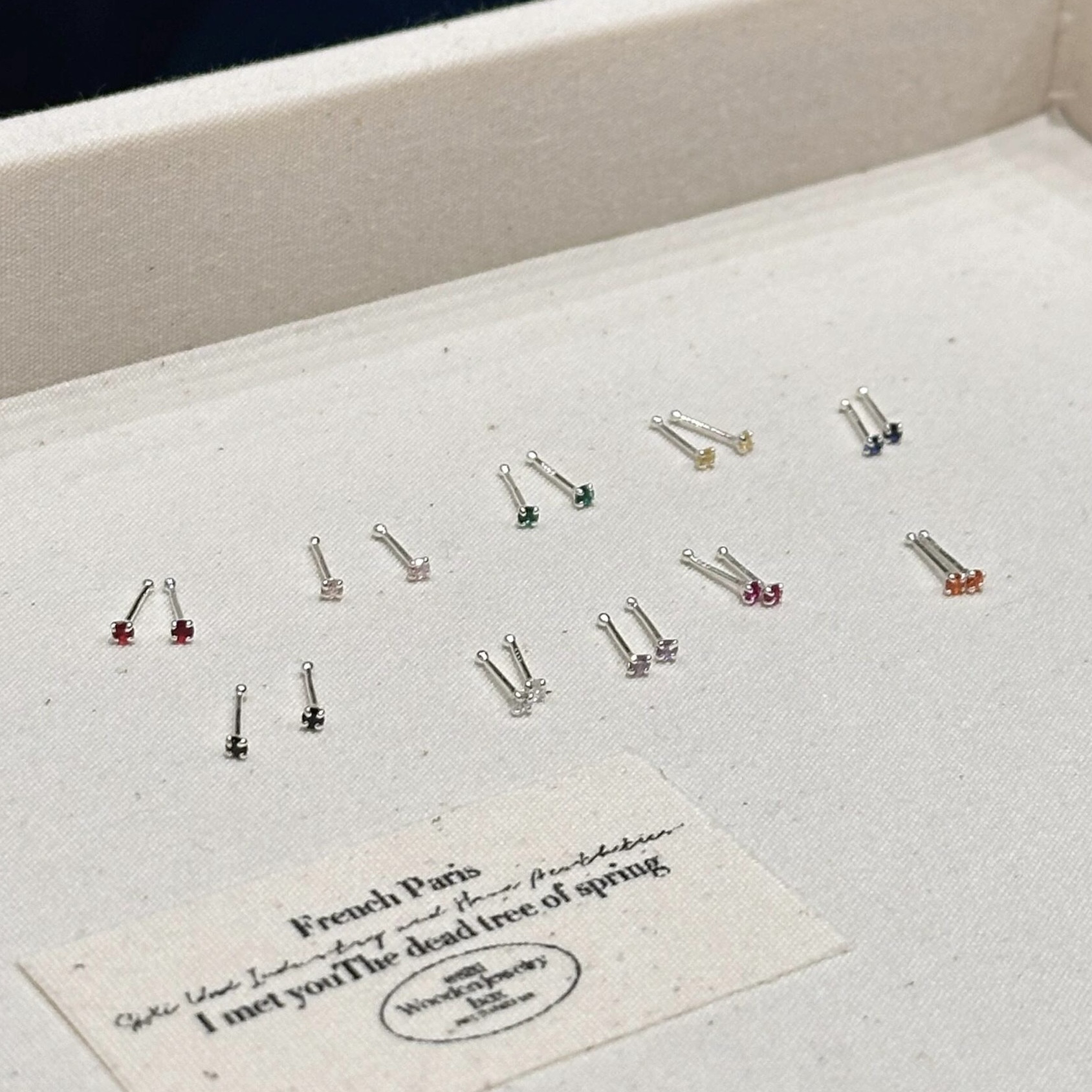 S999纯银mini小石头耳钉彩色锆石养耳洞睡觉不用摘耳骨钉百搭耳饰