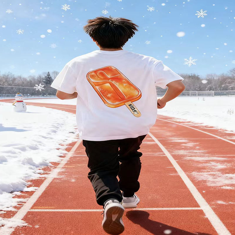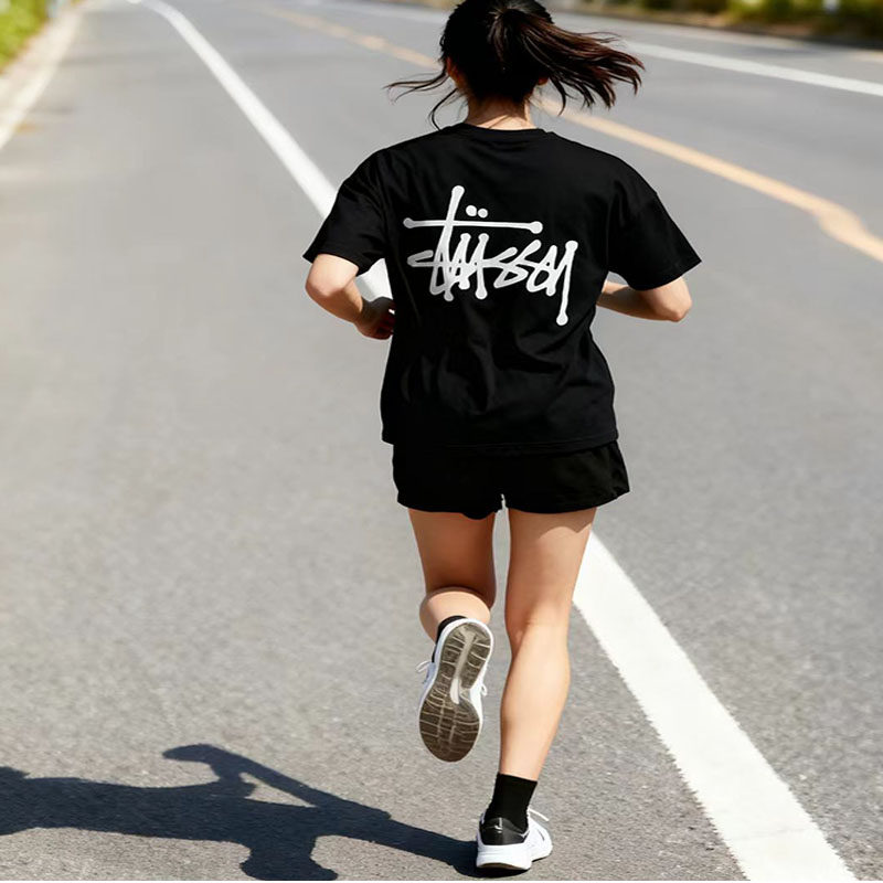 2025新款童装STU基础款字母打底衫短袖男经典宽松T恤女情侣装潮牌