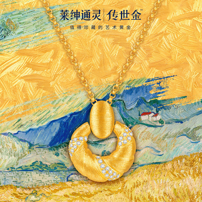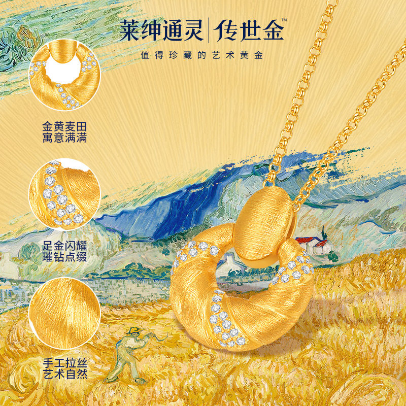 【商场同款】莱绅通灵传世金 艺术馆系列·麦田 足金钻石项链