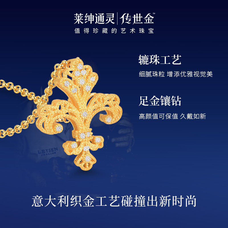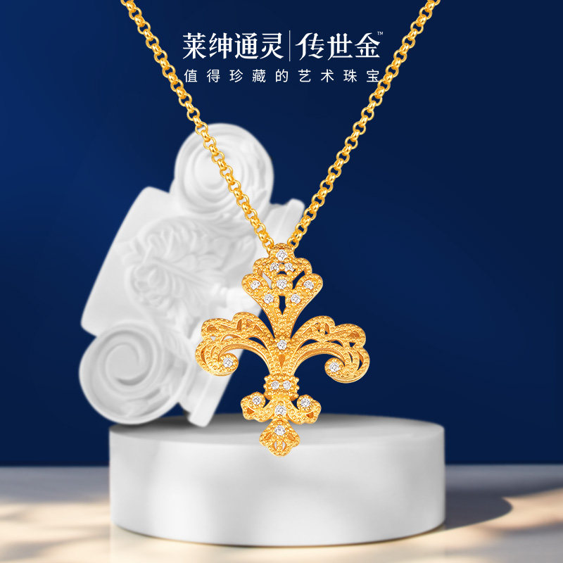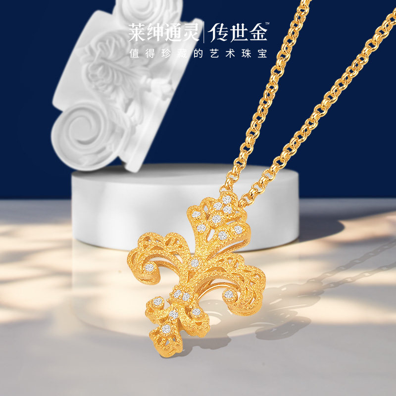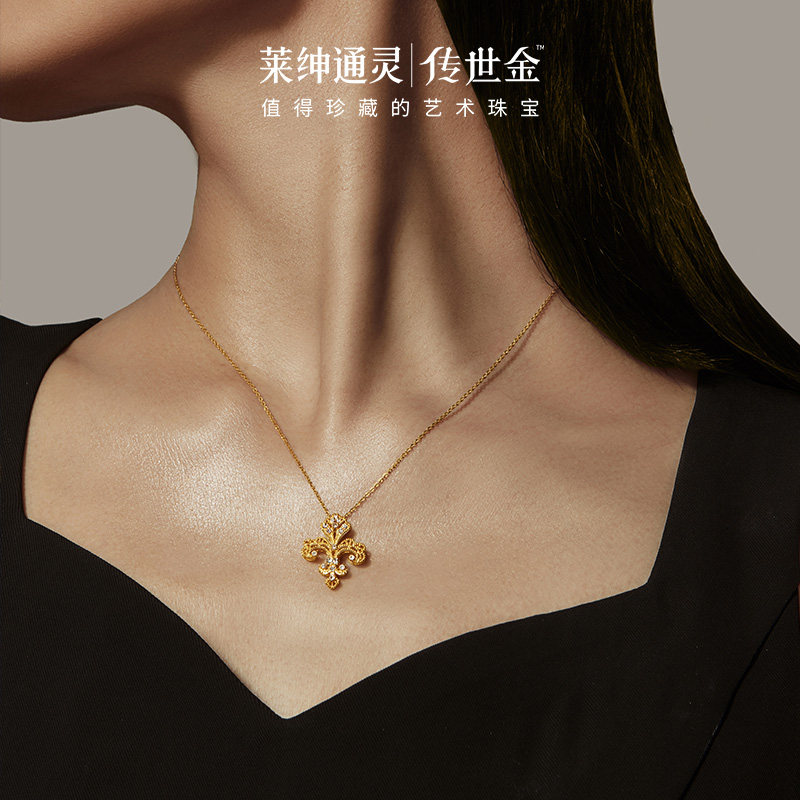 【商场同款】莱绅通灵传世金 鸢尾花足金999黄金钻石项链满钻大版