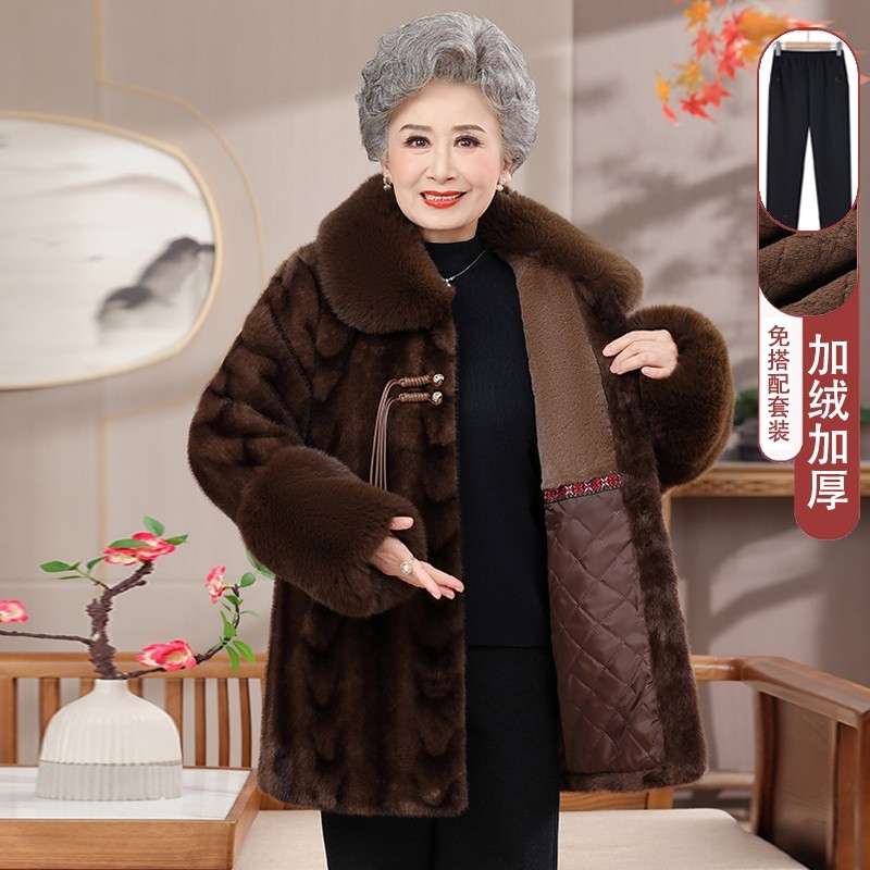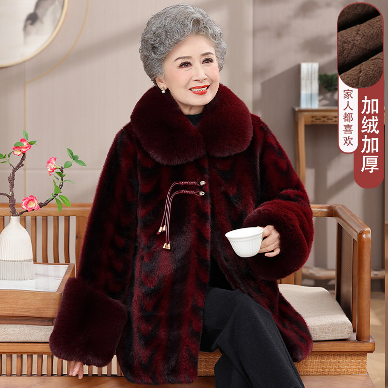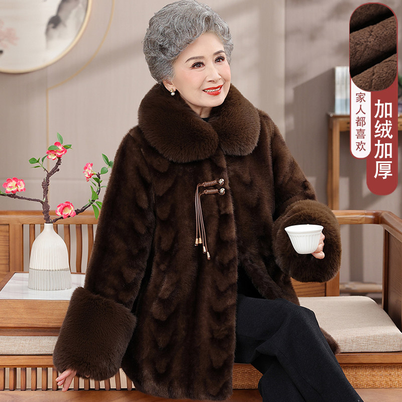 中老年人女冬装水貂绒仿皮草大衣服妈妈冬季加绒加厚保暖外套新款