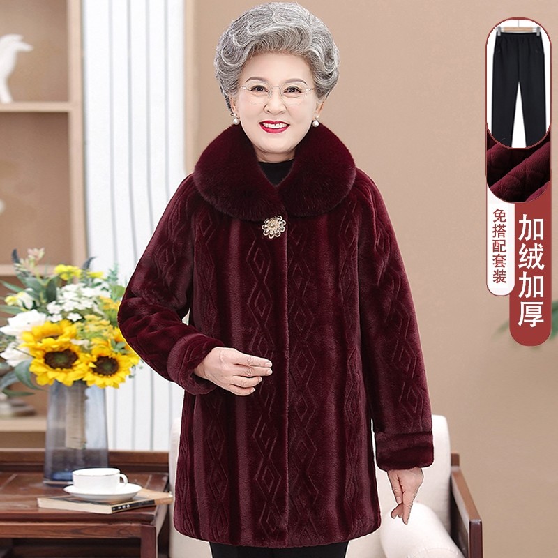 老年人女冬装貂皮大衣奶奶水貂绒加绒外套高贵仿皮草中长款妈妈装