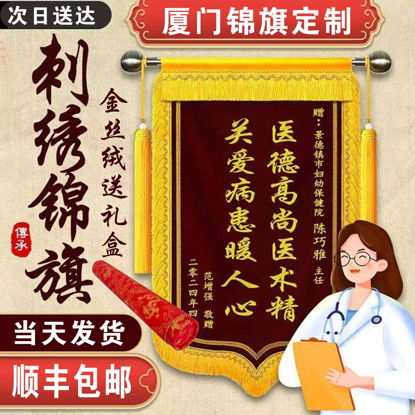锦旗定制订做感谢医生护士月嫂物业送学校老师幼儿园活动颁奖包邮