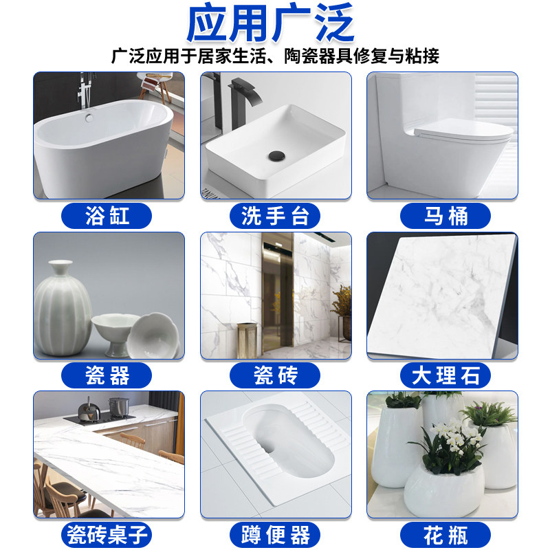 陶瓷洗手盆修补胶无痕釉面瓷砖裂缝搪瓷锅修复胶水瓷器浴缸填补膏粘陶瓷补坑洞蹲便器马桶水箱盖破损补漏剂