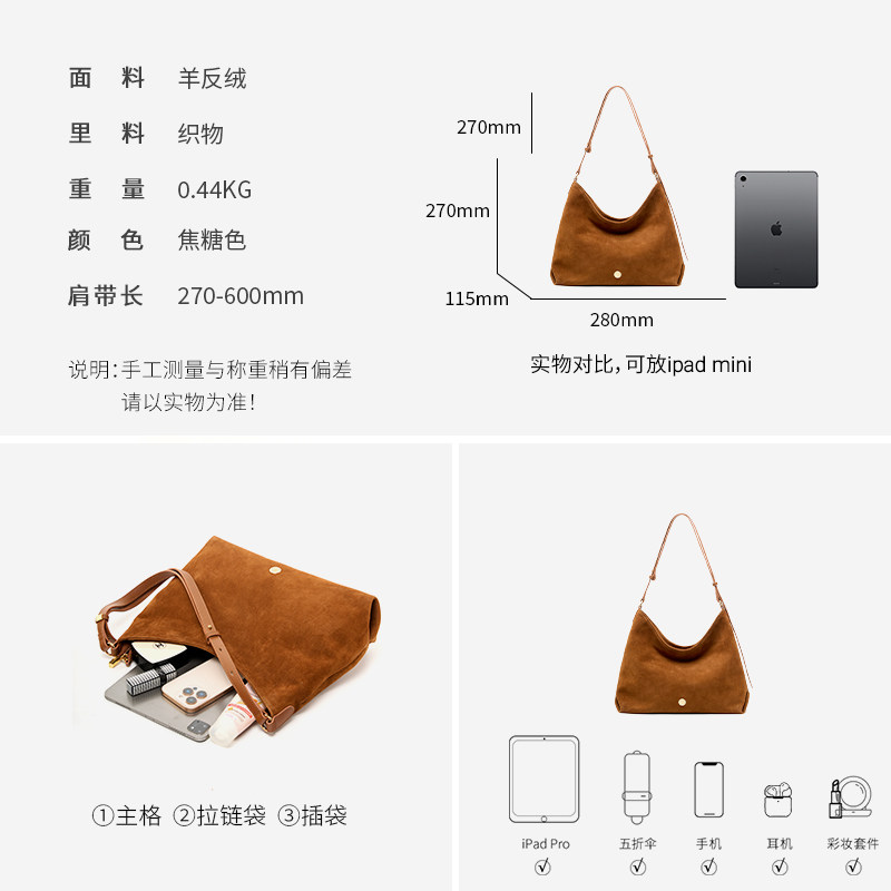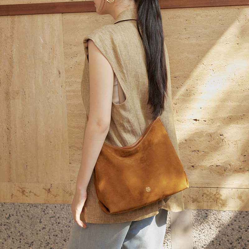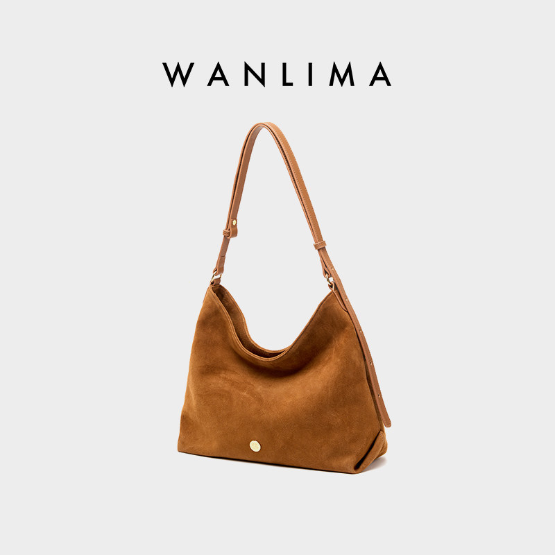 万里马智囊Hobo包羊反绒腋下托特包通勤大容量牛皮手提单肩斜挎包