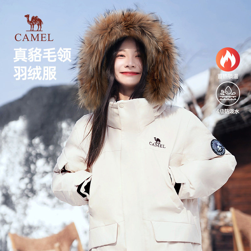 骆驼火焰羽绒服2.0女装2025新款防寒中长款加厚保暖毛领工装外套