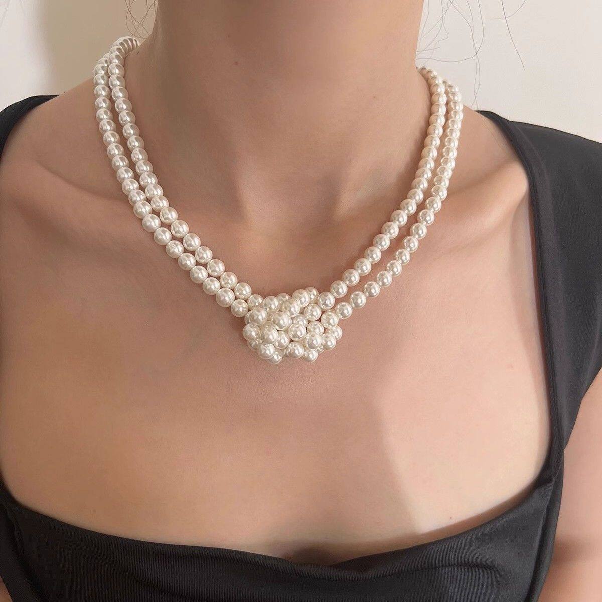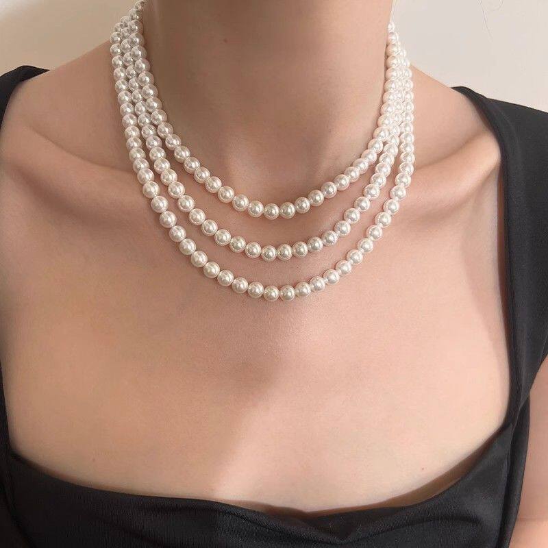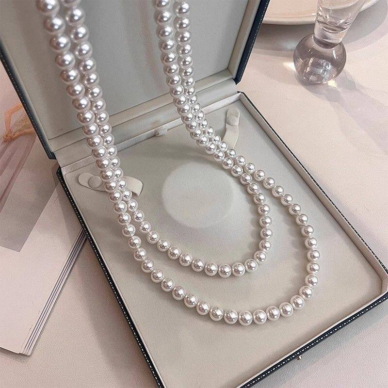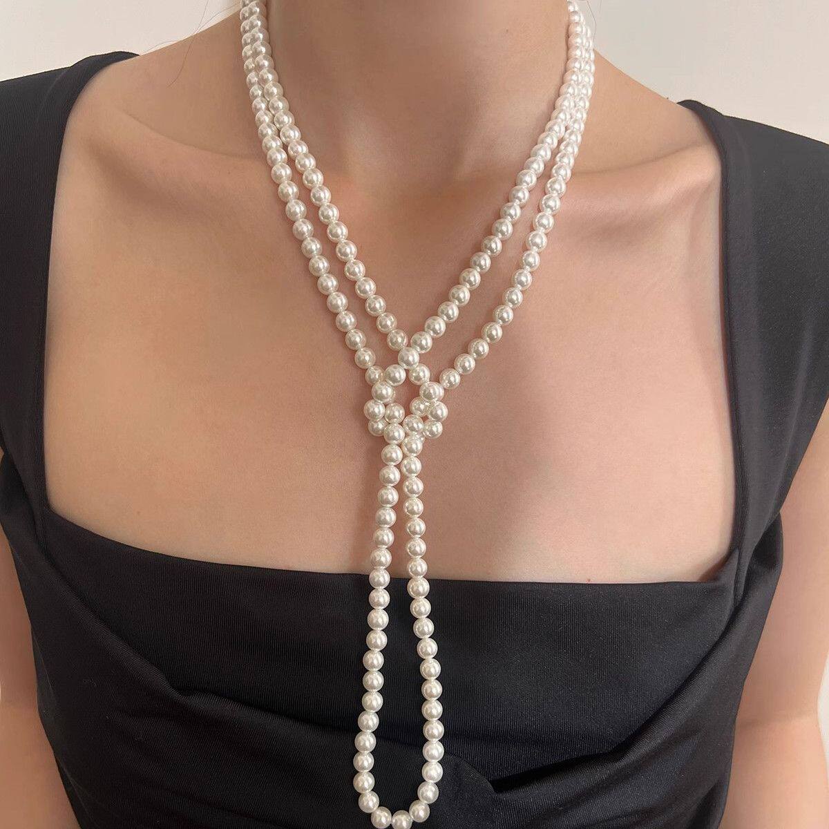 长款珍珠项链女秋冬毛衣链多层叠戴正圆强光仿珍珠颈链气质高级感