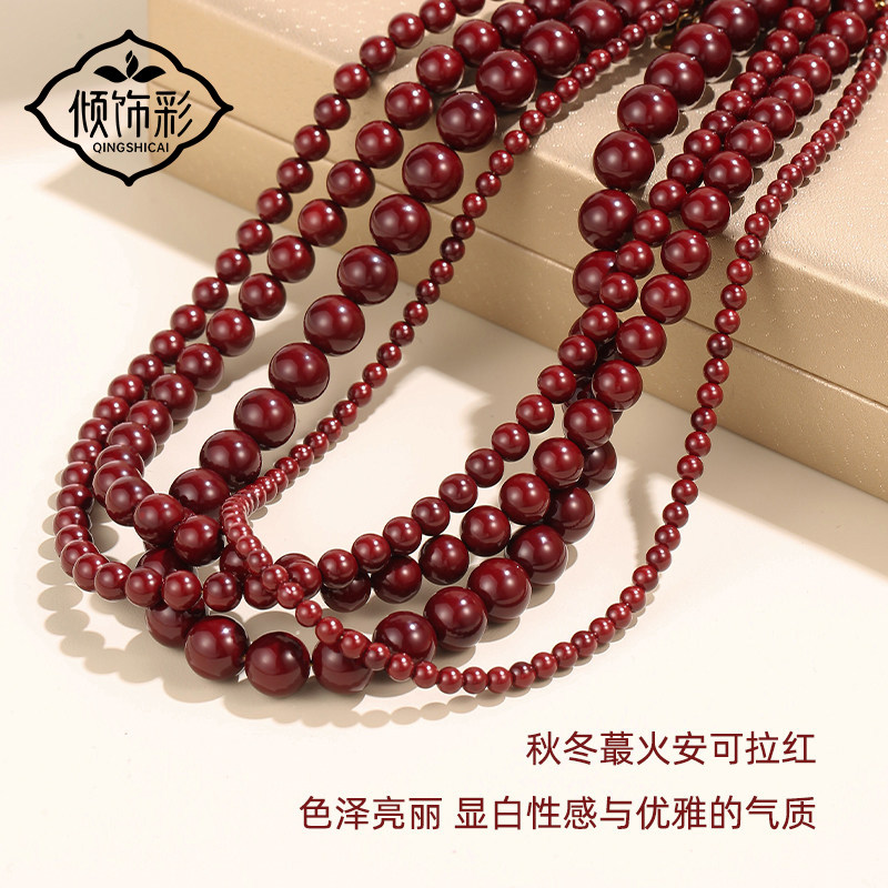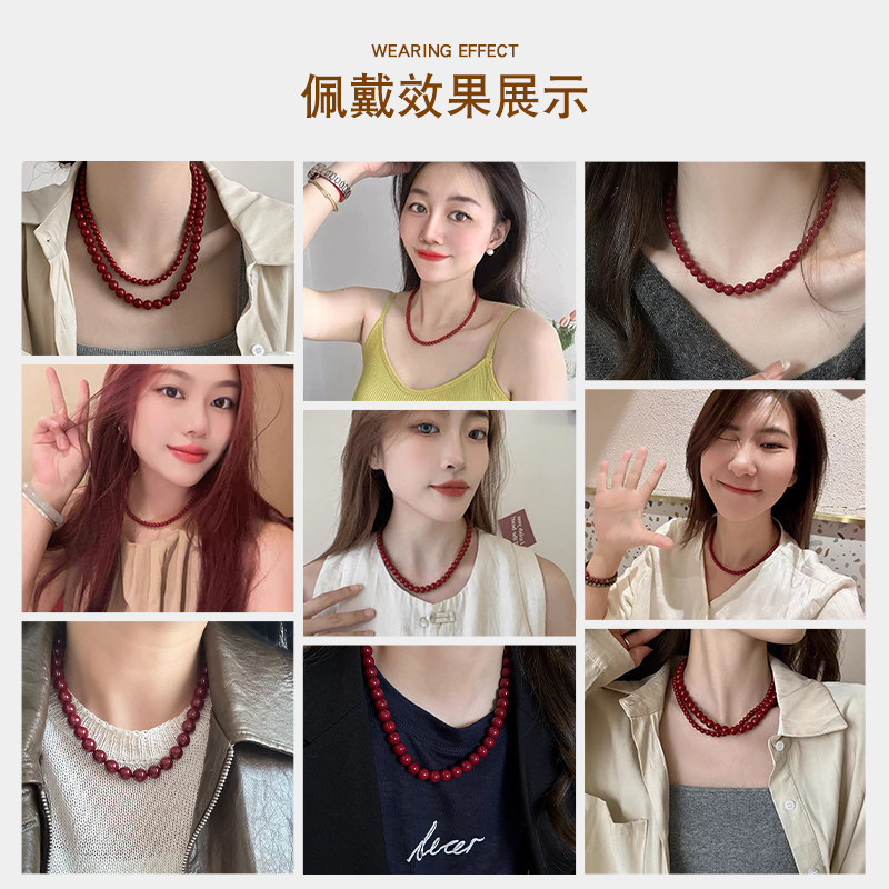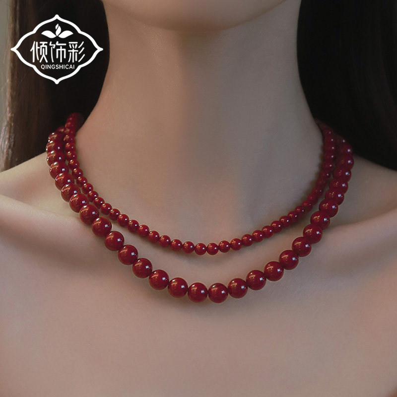 复古酒红色珍珠项链女生款2026新款颈链轻奢秋冬本命年毛衣链正品