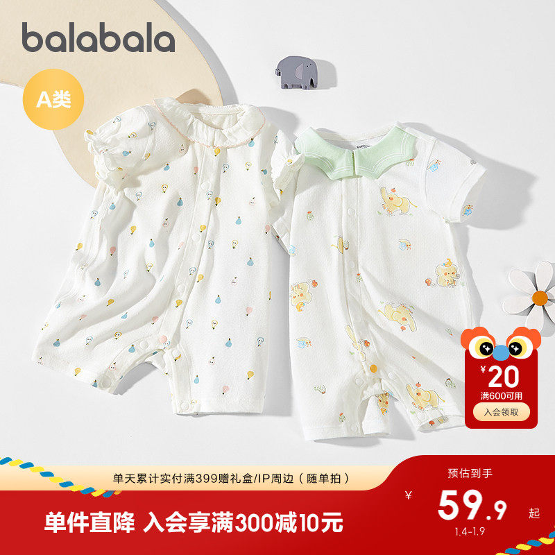 巴拉巴拉童装新生儿连体衣全棉哈衣爬服2025新款婴儿衣服夏装透气