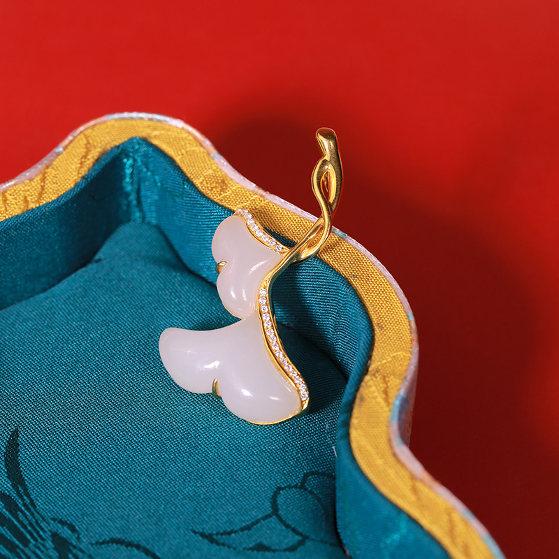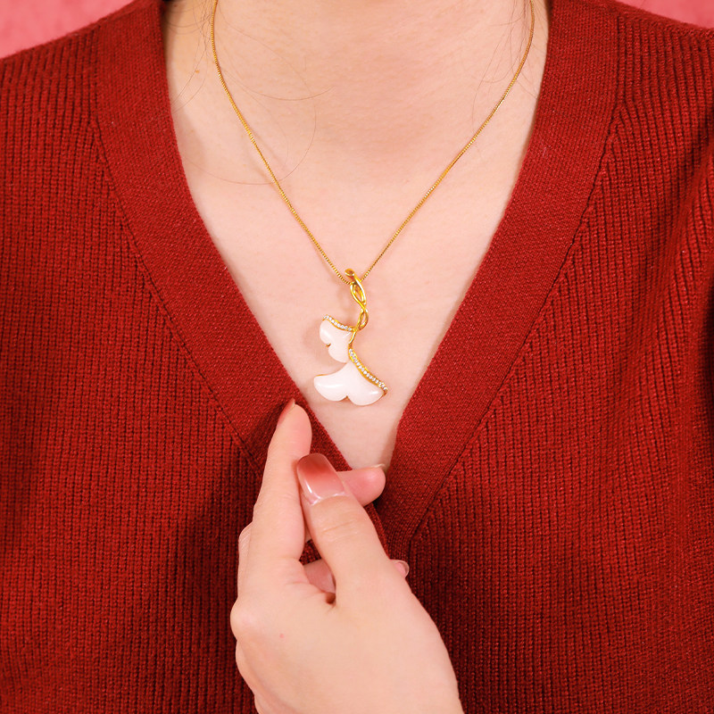和合玉器和田玉羊脂白玉18k金镶嵌银杏叶挂件玉石钻石吊坠叶子坠