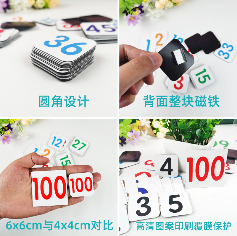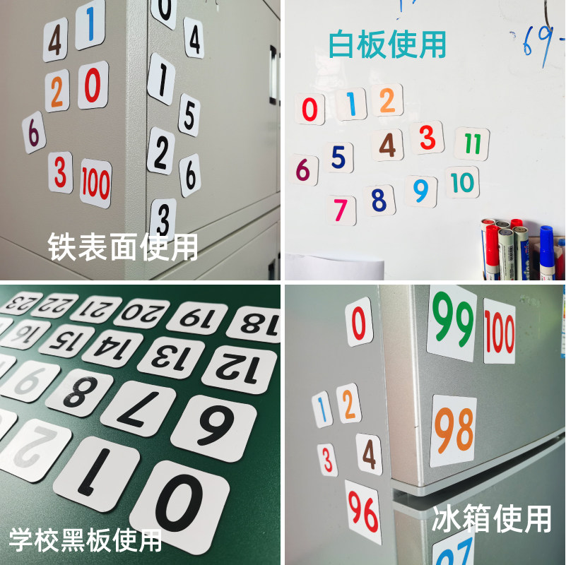 磁性数字卡片贴0到100磁力冰箱贴吸铁石黑色彩色数字磁铁黑板白板磁力贴1到50教学教具广告办公标识10-20可选