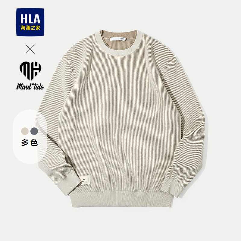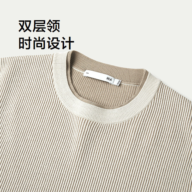 HLA/海澜之家亦心即为长袖条纹针织衫25秋冬新款双层领打底毛衣男