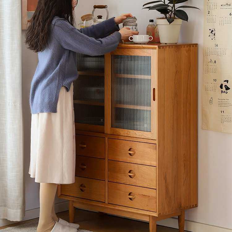 北欧实木餐边柜 家用小户型多功能抽屉茶水柜厨房收纳碗柜储物柜