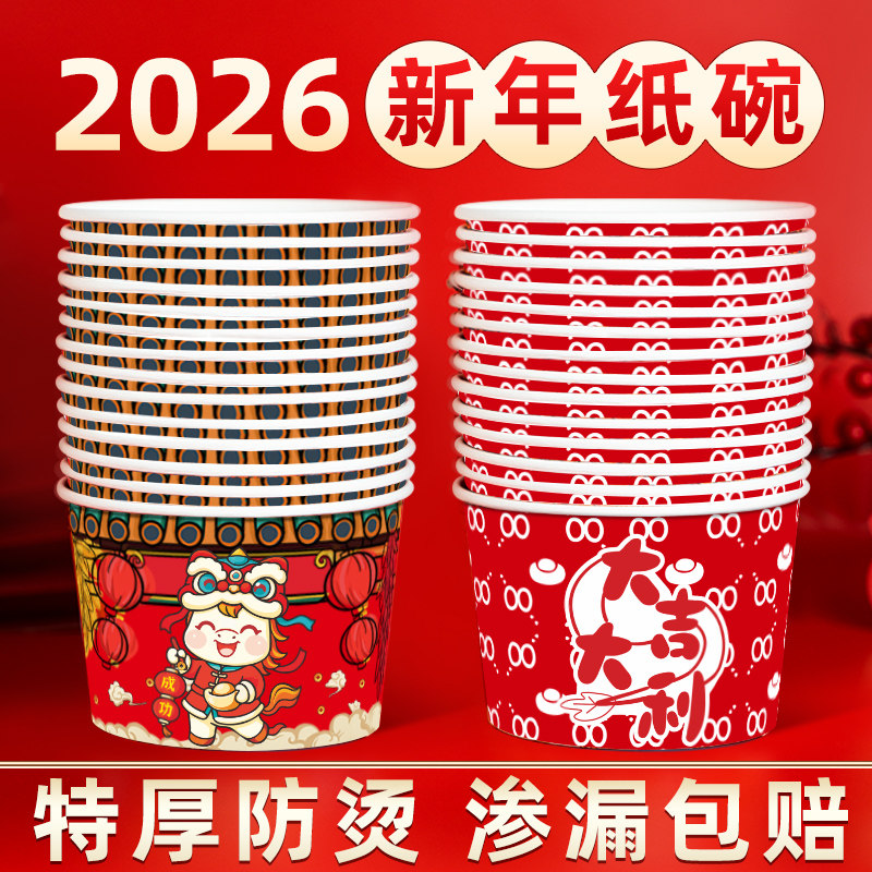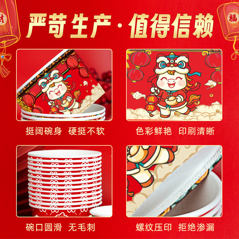 一次性新年纸碗餐盒家用外卖碗商用碗筷套装打包盒饭盒餐具整箱批