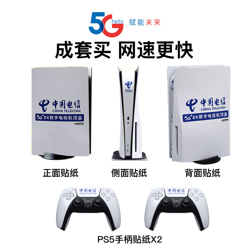 PS5pro机身贴纸中国电信slim保护logo手柄老款全包光驱数字中国移动保护膜游戏周边配件主机中间防刮蹭指纹