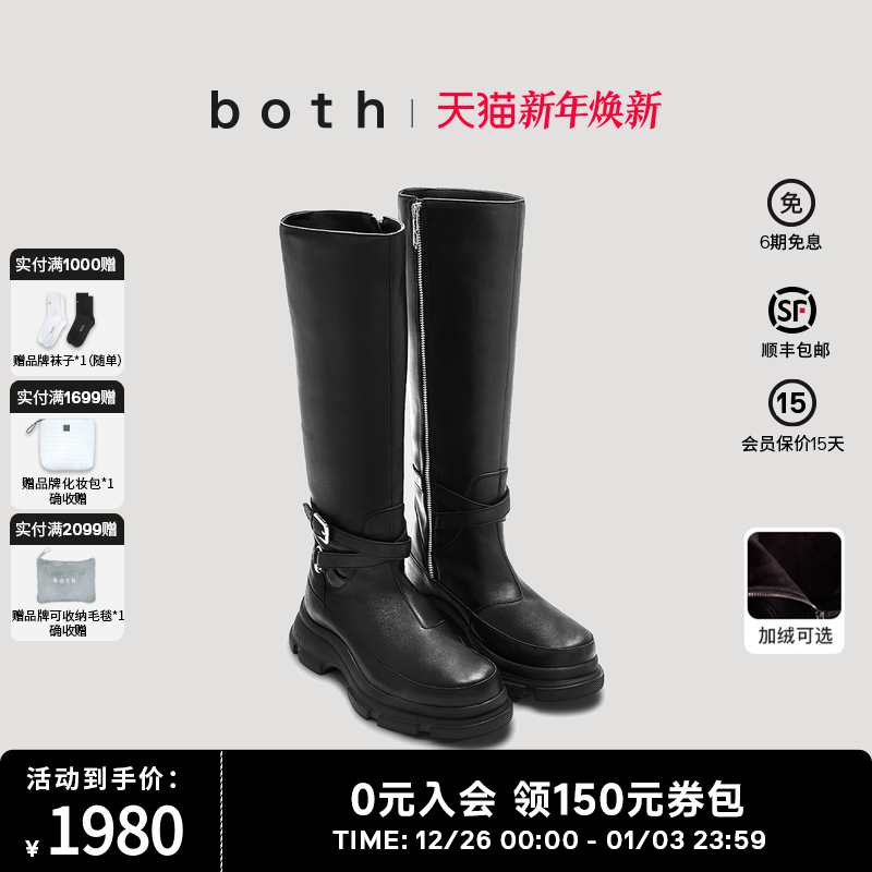 刘宇宁同款both25秋GAO EVA系列厚底增高长筒牛皮革机车骑士靴女