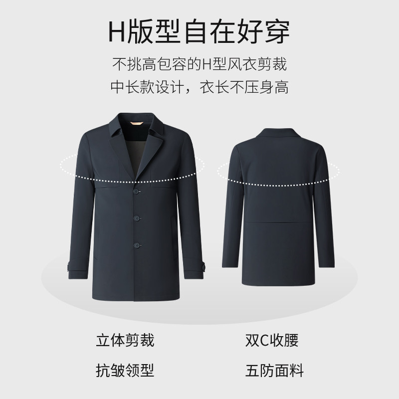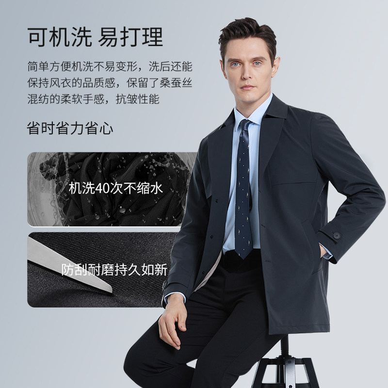 【机洗不变形】SHANSHAN杉杉翻领风衣男春秋季商务免烫中长款外套