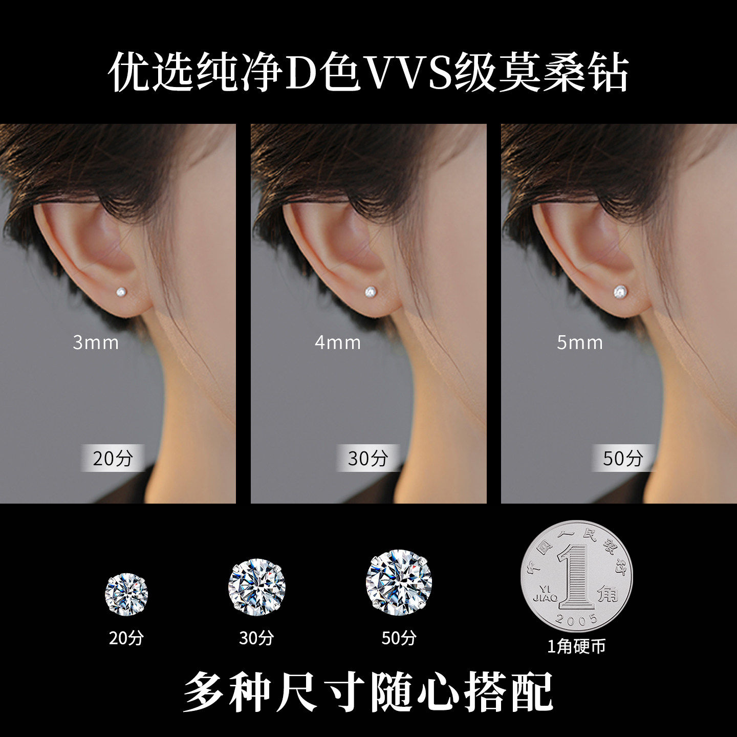S925纯银莫桑钻耳钉轻奢爆闪高级感耳骨钉莫桑石耳环闪钻爆款耳饰