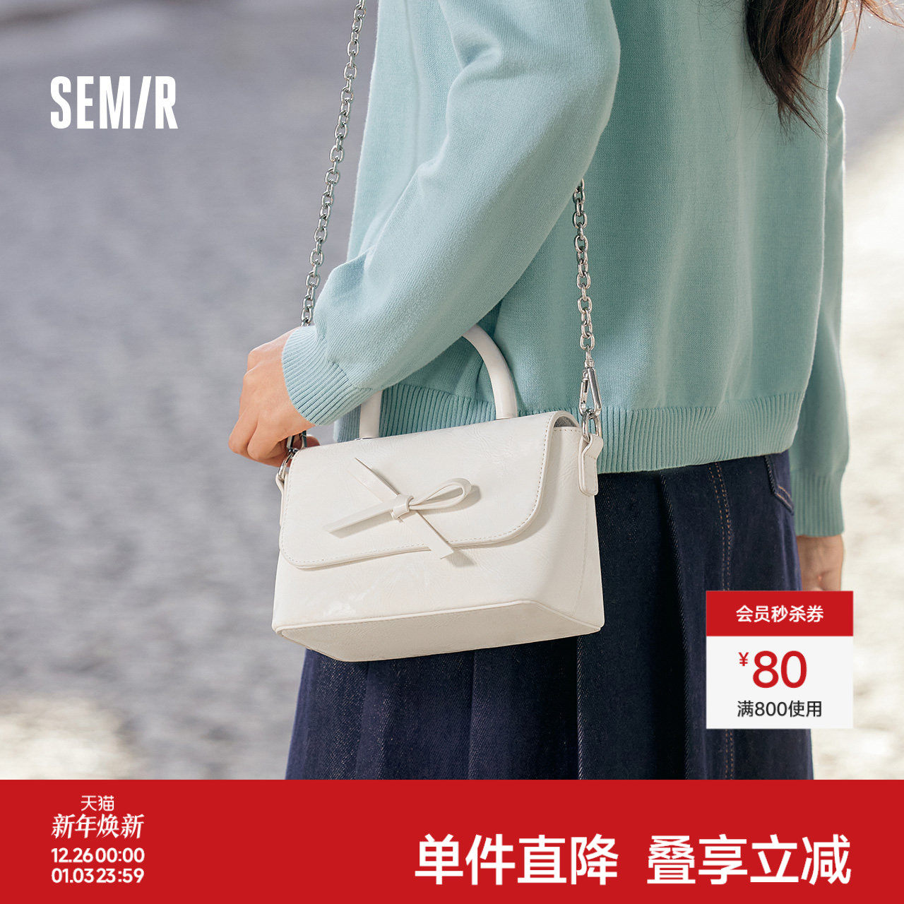 森马包包女小方包蝴蝶结手提包2025新款盒子包百搭通勤斜挎包学生
