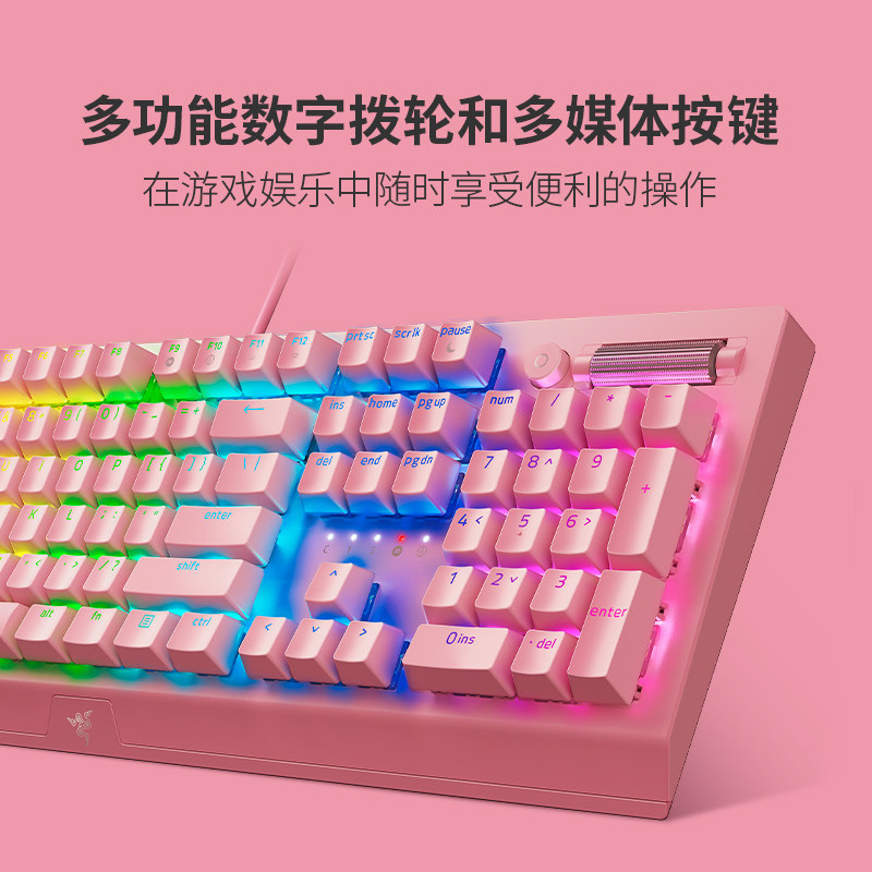 Razer雷蛇黑寡妇蜘蛛V3粉晶104键游戏电竞RGB背光USB有线机械键盘