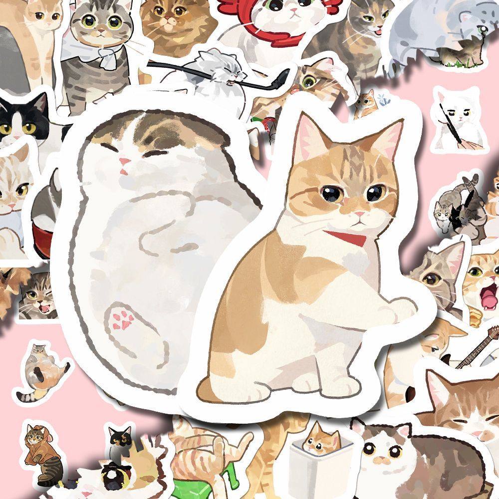 192张猫猫治愈世界小清新插画猫咪可爱简笔画贴纸diy贴