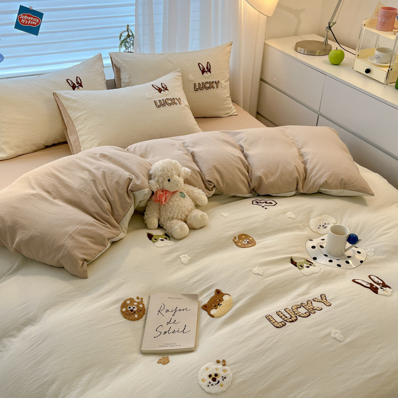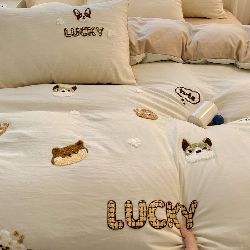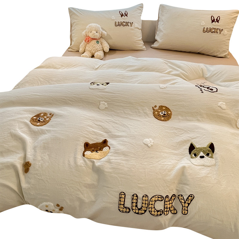 卡通毛巾绣纯棉四件套床上用品全棉儿童可爱萌犬被套宿舍三件套男