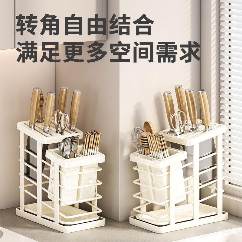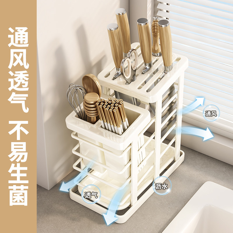 刀架筷子筒笼盒一体厨房置物架勺子筷笼刀具收纳沥水置物架防霉