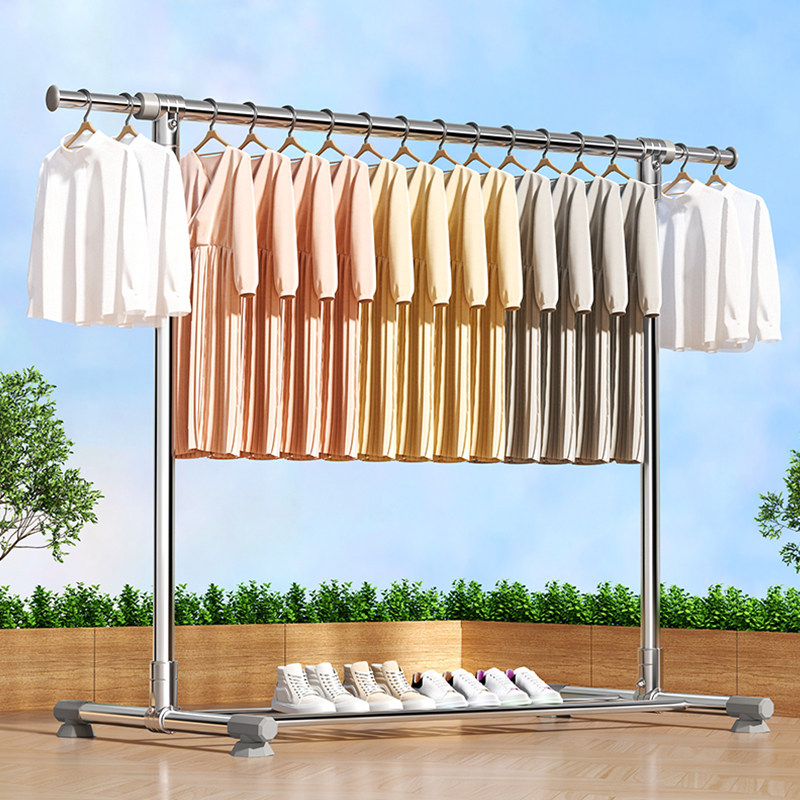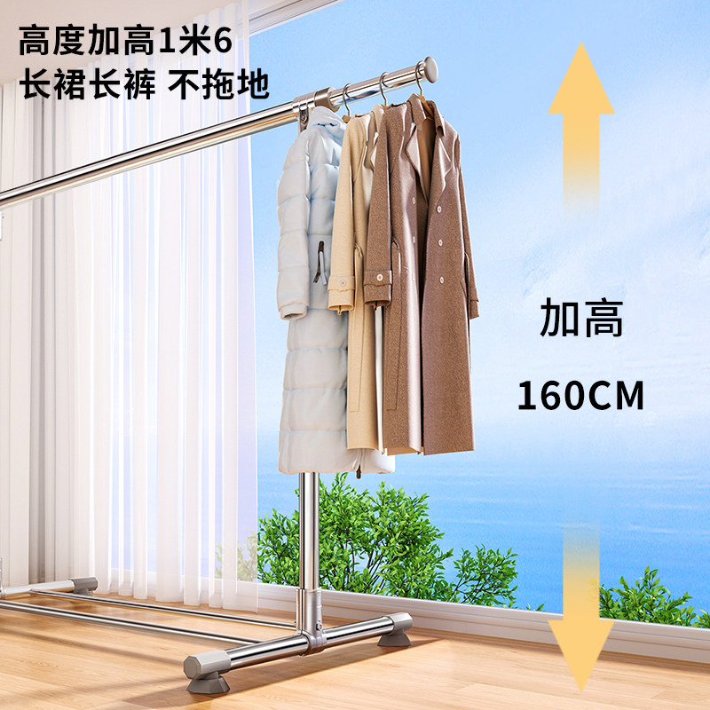 落地晾衣架折叠不锈钢家用阳台室内室外伸缩凉衣杆室内晒被子神器