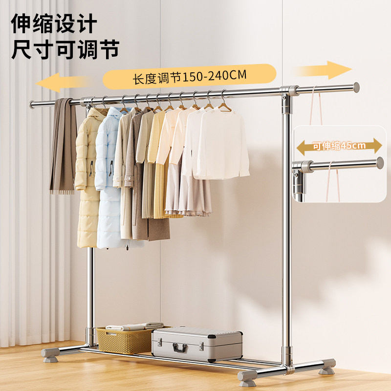 钢管晾衣架落地家用卧室阳台挂衣架伸缩单杆晒衣架简易凉衣服架子