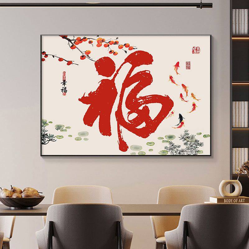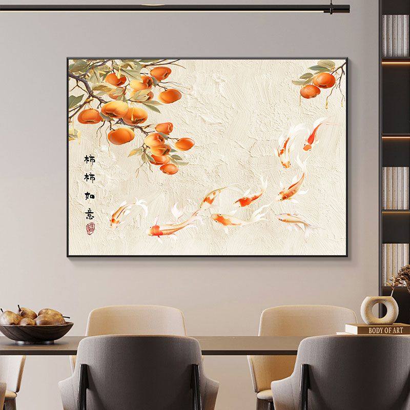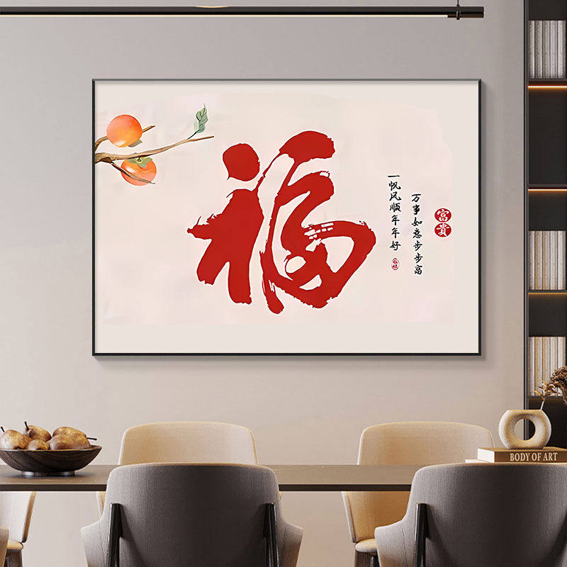 柿柿如意餐厅装饰画新中式饭厅餐桌壁画事事如意客厅福字墙面挂画