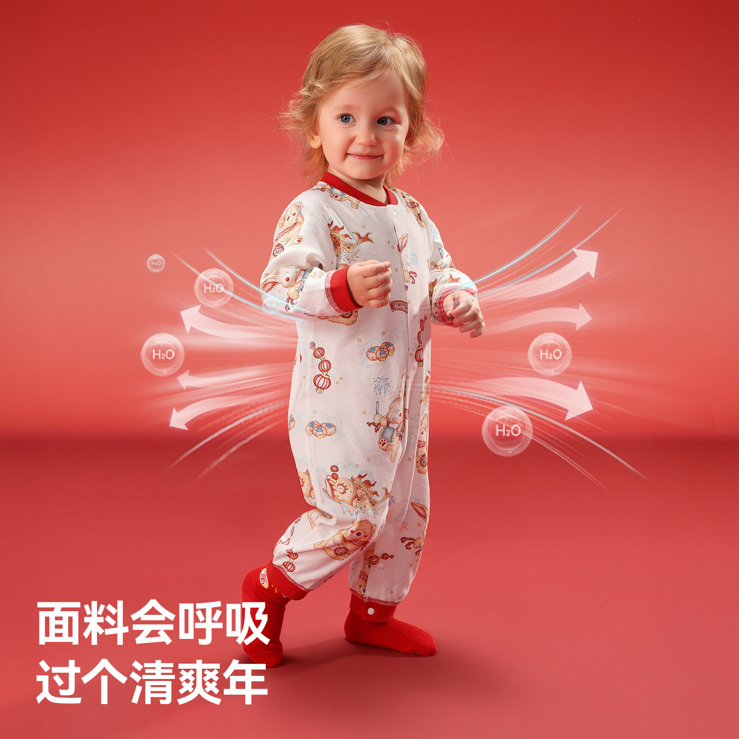 贝肽斯婴儿连体衣冬夹棉外出新生婴幼儿满月百天宝宝红色衣服睡衣