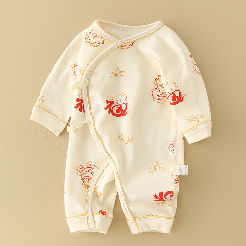 婧麒新生儿婴儿衣服秋冬夹棉满月纯棉初生宝宝秋装连体衣a类爬服