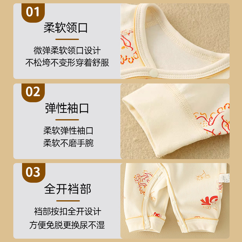 丸丫婴幼儿衣服四季宝宝连体衣保暖打底天竹棉新生儿长袖哈衣爬服